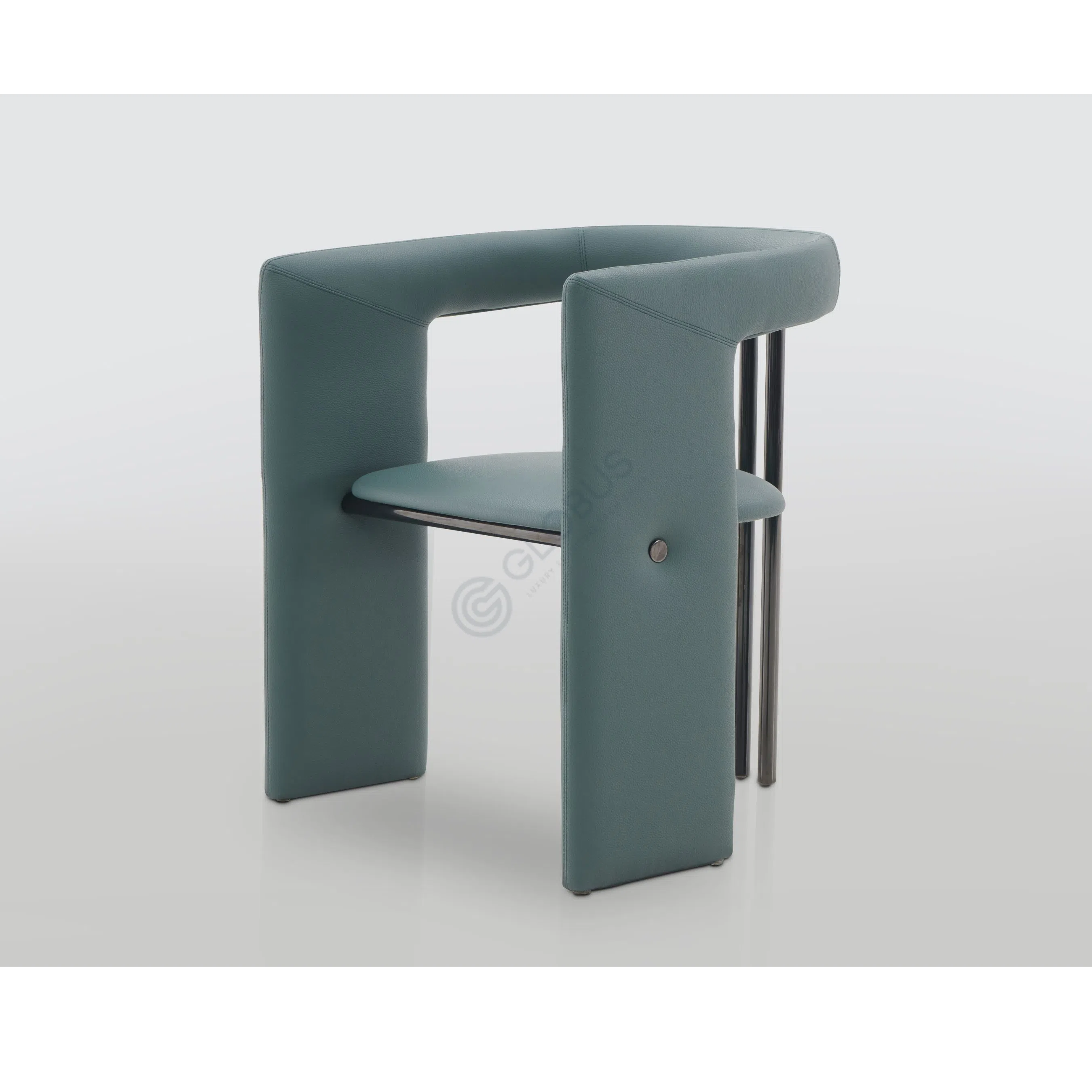 Обивка из качественной экокожи отличается приятной текстурой и долговечностью. Глубокий тон обивки гармонично сочетается с блеском деталей из нержавеющей стали, создавая баланс между теплотой материалов и холодным блеском металла.