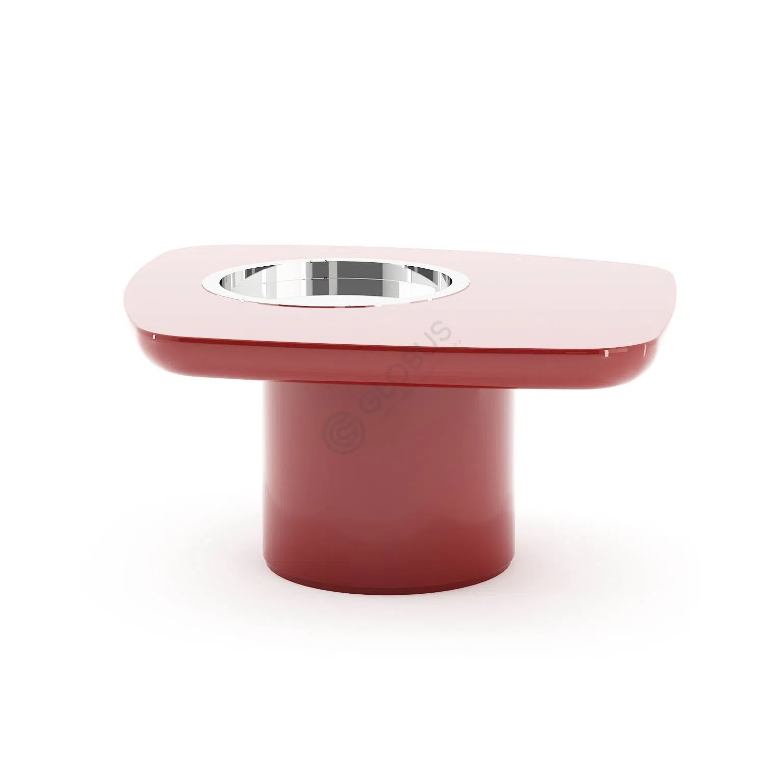 Основой конструкции служит устойчивое основание из углеродистой стали, что гарантирует надежность и долговечность. Столешница выполнена из МДФ, покрытого гладкой отделкой, которая подчеркивает лаконичный дизайн и приятна на ощупь. Холодный блеск нержавеющей стали добавляет акцент современности и делает изделие идеальным выбором для помещений с утонченным вкусом.