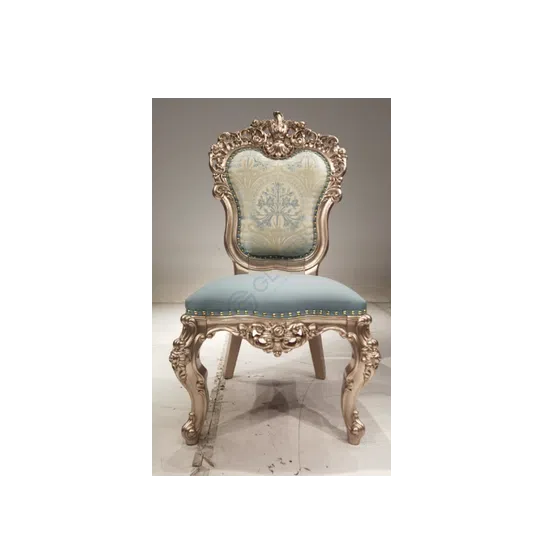 Изысканный обеденный стул представляет собой образец классического европейского стиля, привносящего в пространство нотку дворцовой роскоши и утонченности. Его каркас выполнен из массива натурального дерева, украшенного великолепной ручной резьбой. Каждый изгиб и декоративный элемент подчеркивают мастерство создания этого предмета мебели.