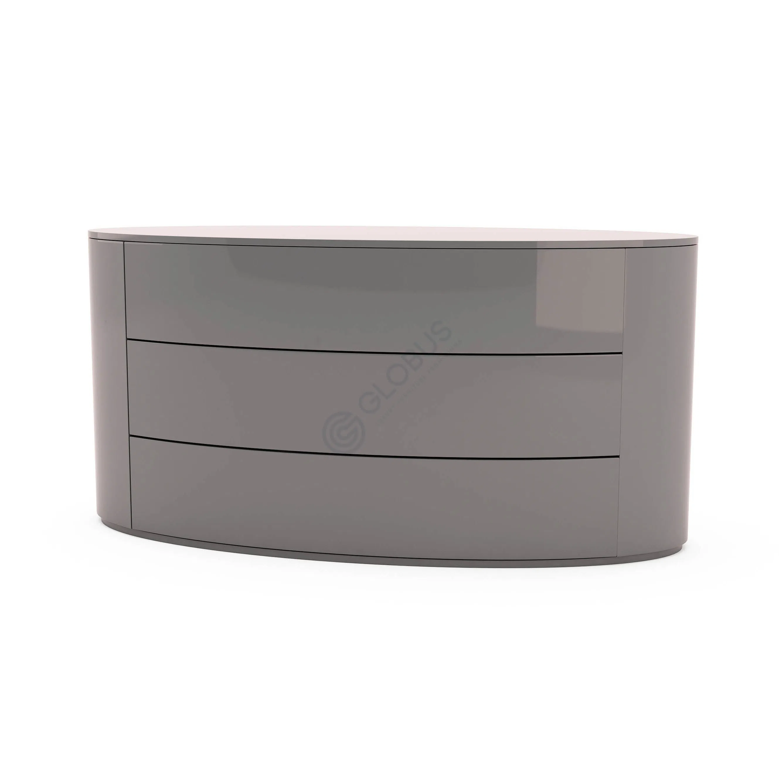 Этот современный комод привлекает внимание лаконичной округлой формой и элегантным сиянием лакированной поверхности. Благородный серый оттенок создаёт ощущение спокойствия и гармонии, что делает его идеальным дополнением для интерьеров в минималистичном стиле.