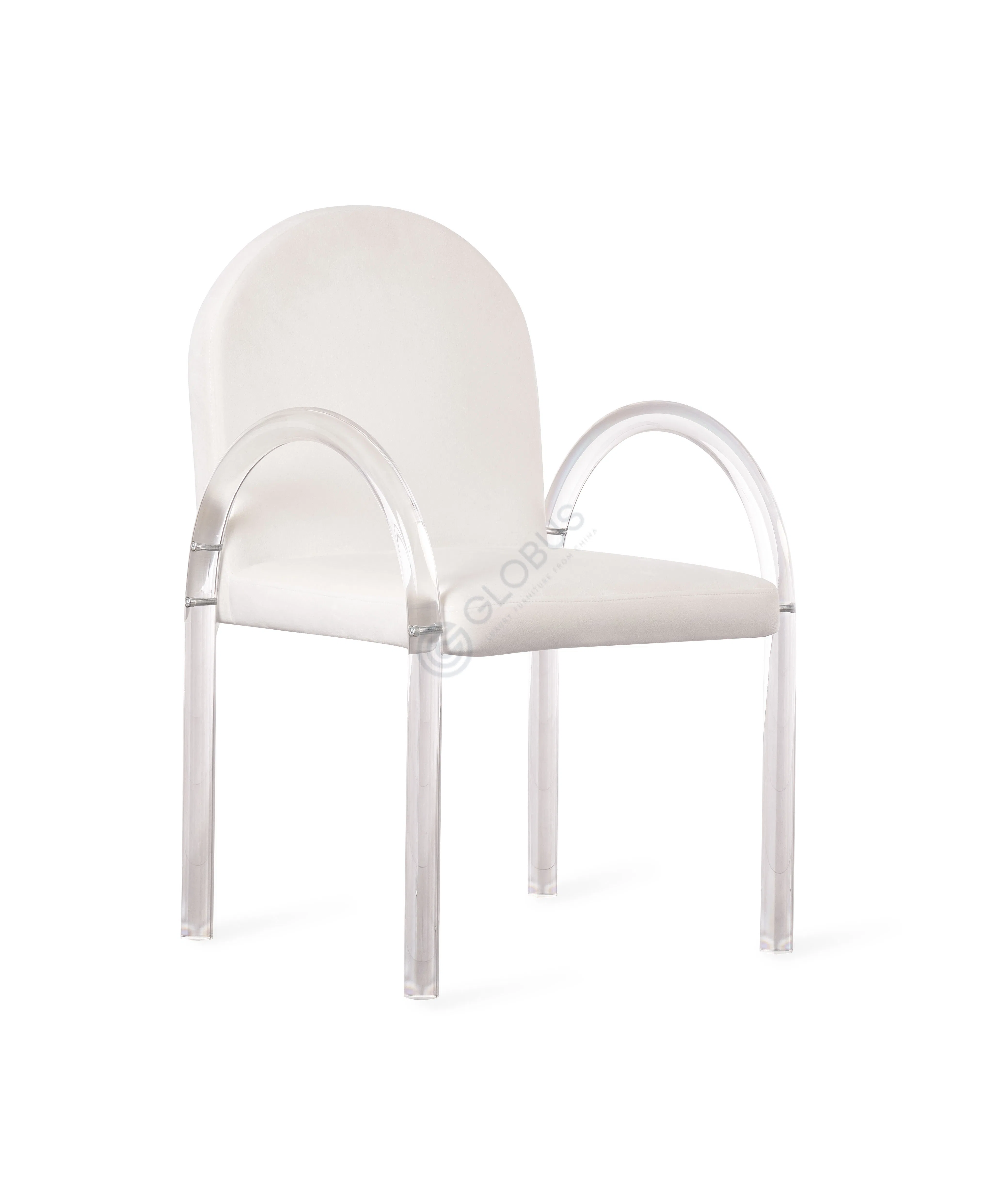 Стул из акрила и текстиля идеально впишется в современный интерьер благодаря своей лаконичной форме и ненавязчивому дизайну. Его прозрачный корпус из акрила создает эффект легкости, делая изделие визуально невесомым и гармоничным.