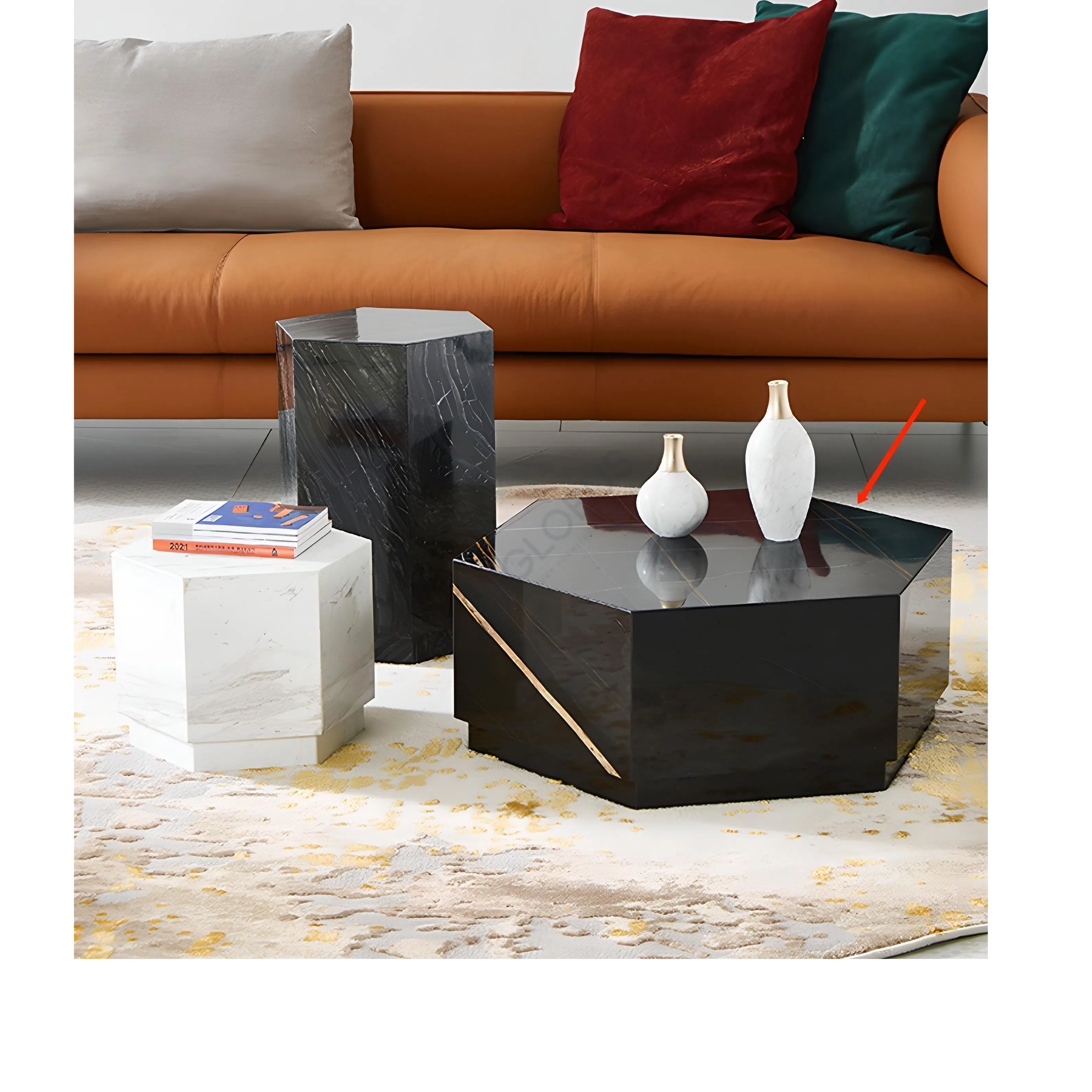 Этот угловой столик представляет собой воплощение современного дизайна, где функциональность встречается с изысканной эстетикой. Его гексагональная форма, высеченная из цельного натурального мрамора, придает пространству гостиной особую глубину и архитектурный акцент. Чистые линии и монолитность материала создают ощущение прочности и неподвластной времени элегантности.