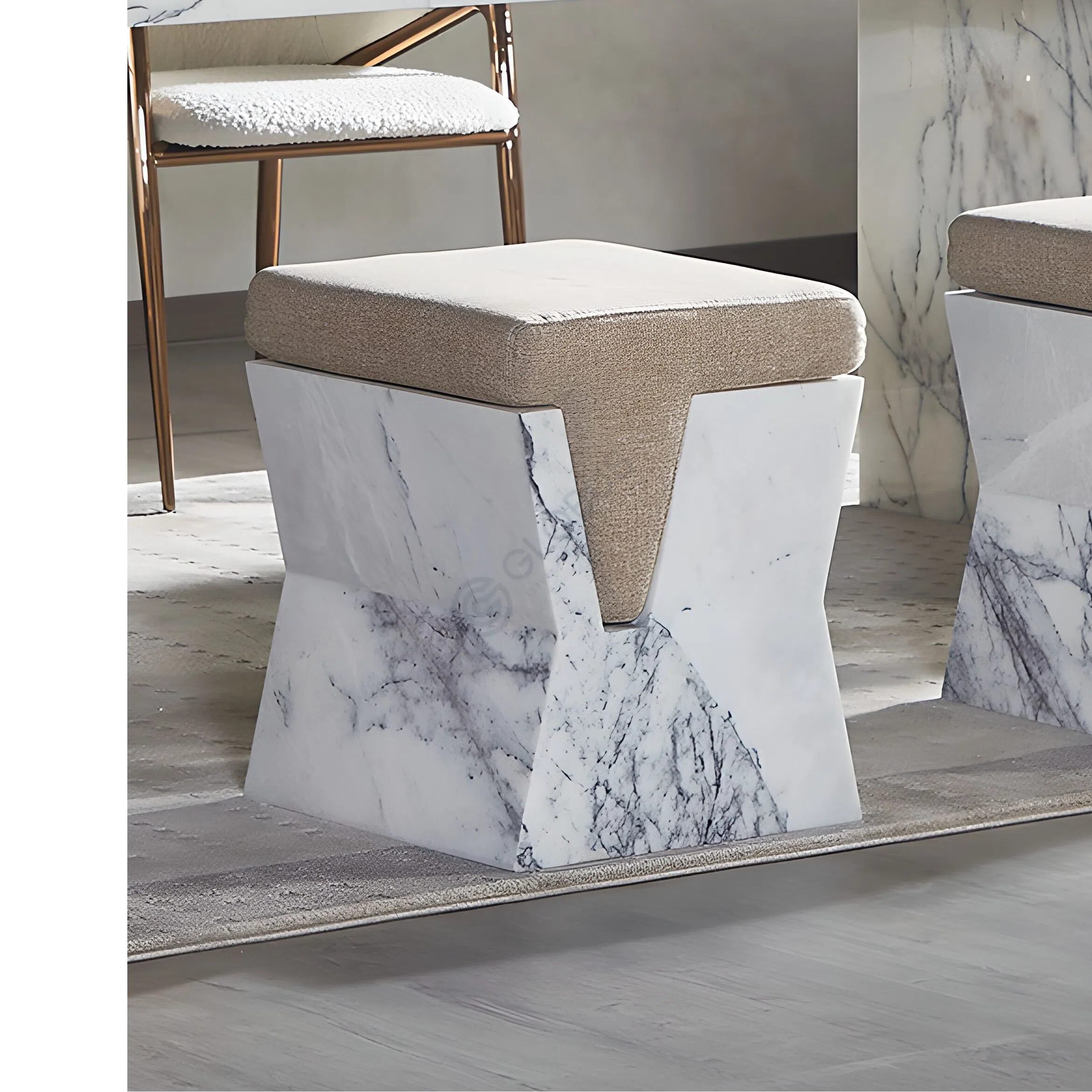 Созданная из отборных природных материалов, эта скамья демонстрирует присущую каждому элементу красоту. Массивный мрамор образует прочное основание, проявляя свою неповторимую природную прожилку, подобную абстрактному искусству. Этот внушительный каменный элемент изящно сочетается с гладкой поверхностью из натурального дерева насыщенного оттенка, что создает тактильный контраст и ощущение утонченного тепла.