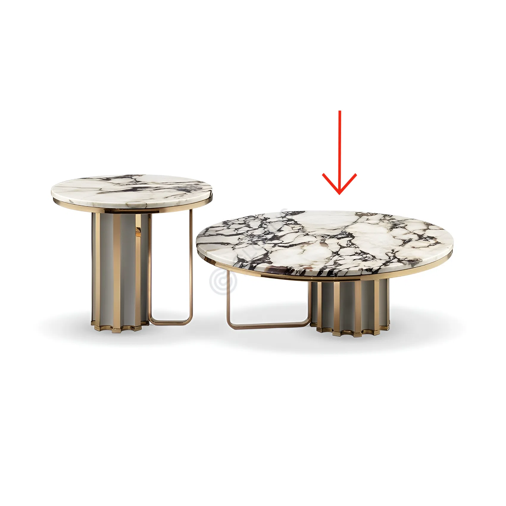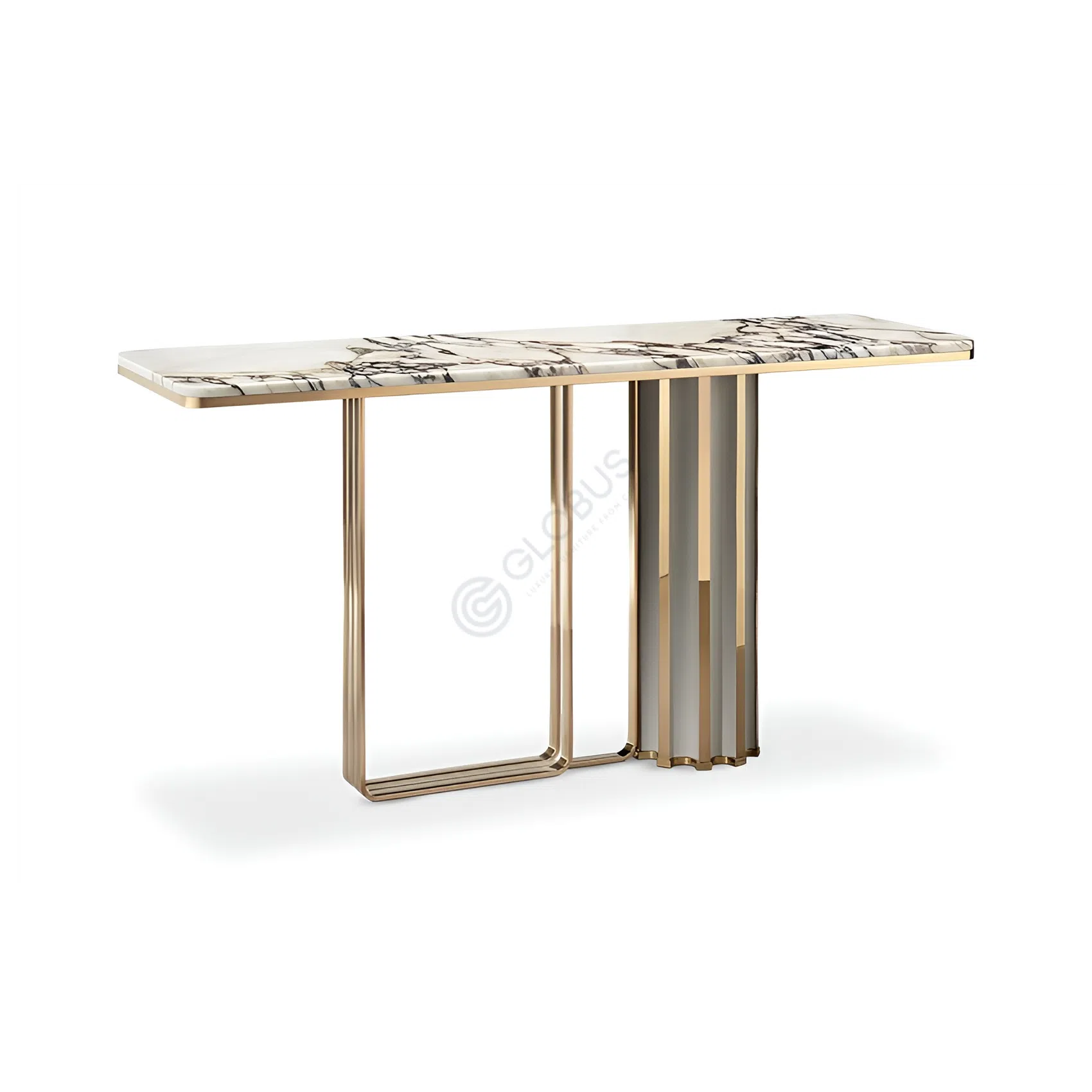 Стол изготовлен из натурального мрамора, что придает ему уникальное очарование и высокую износостойкость. Мягкая экокожа на микрофибре придает столу приятное на ощупь оформление, а металлический каркас обеспечивает прочную и стабильную конструкцию.