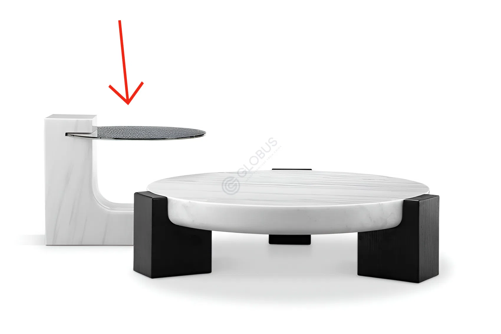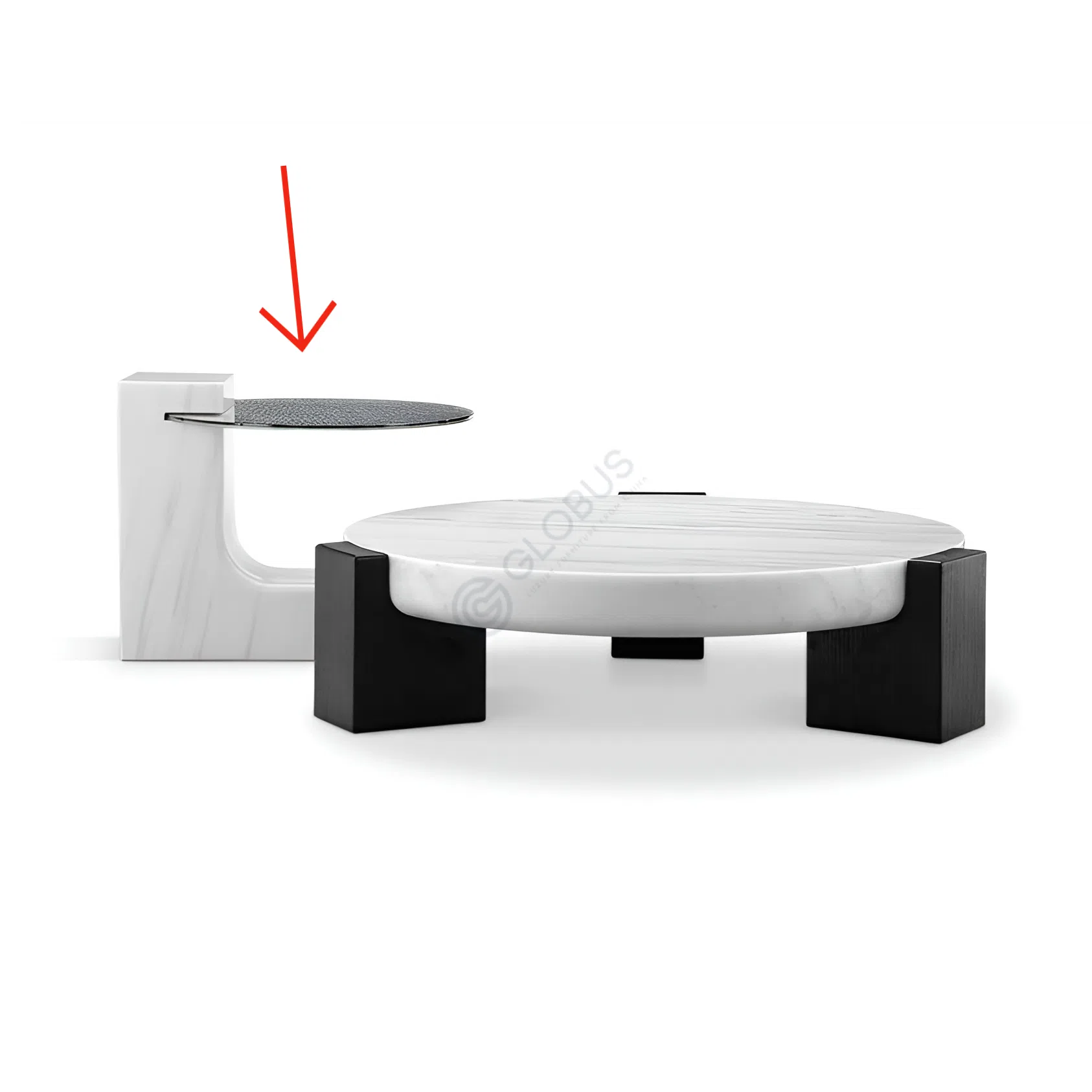 Элегантный и функциональный, наш современный журнальный столик является идеальным дополнением к вашей гостиной. Изготовленный из натурального мрамора с глянцевым эффектом и натурального дерева, он объединяет изысканный дизайн и прочность материалов.