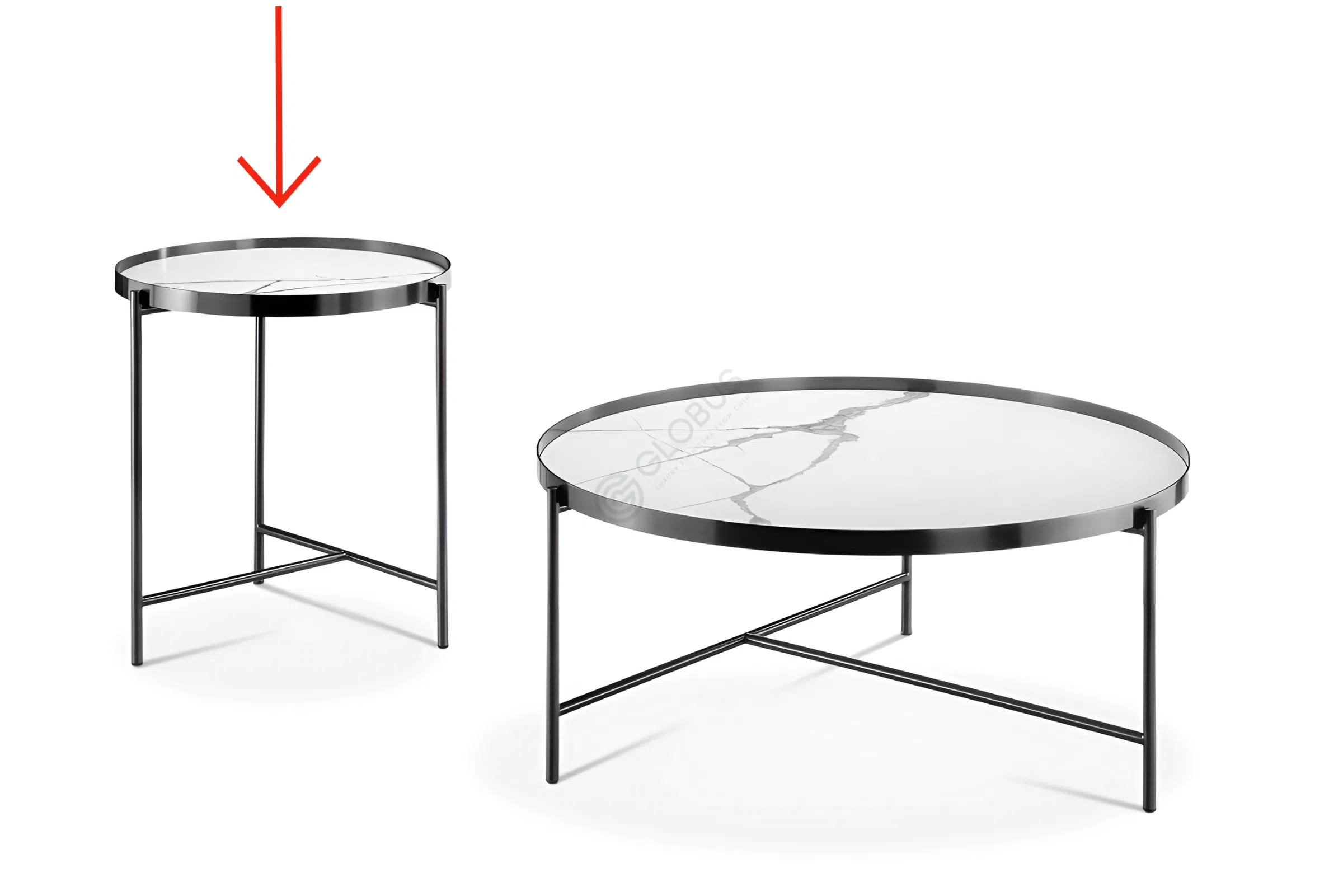 Верхняя часть выполнена из натурального мрамора, каждая прожилка которого рассказывает свою неповторимую историю природы. Этот природный материал придает уникальность каждому изделию. Основание, созданное из прочной нержавеющей стали, обеспечивает устойчивость и долговечность, подчеркивая минималистичный дизайн.