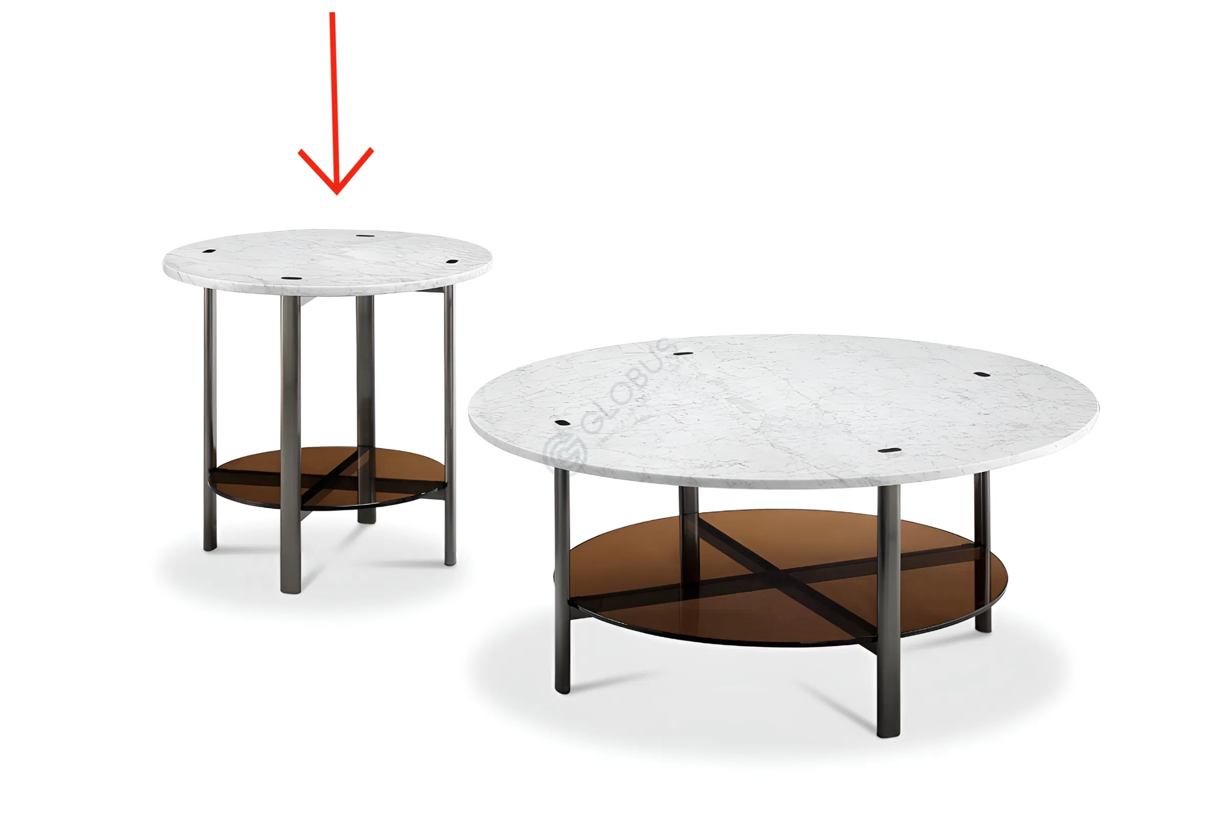 Представляем вам уникальный журнальный столик, который станет прекрасным дополнением для вашей современной гостиной. Этот элегантный и практичный предмет мебели выполнен из высококачественных материалов - натурального мрамора, нержавеющей стали и закаленного стекла толщиной 8 мм.