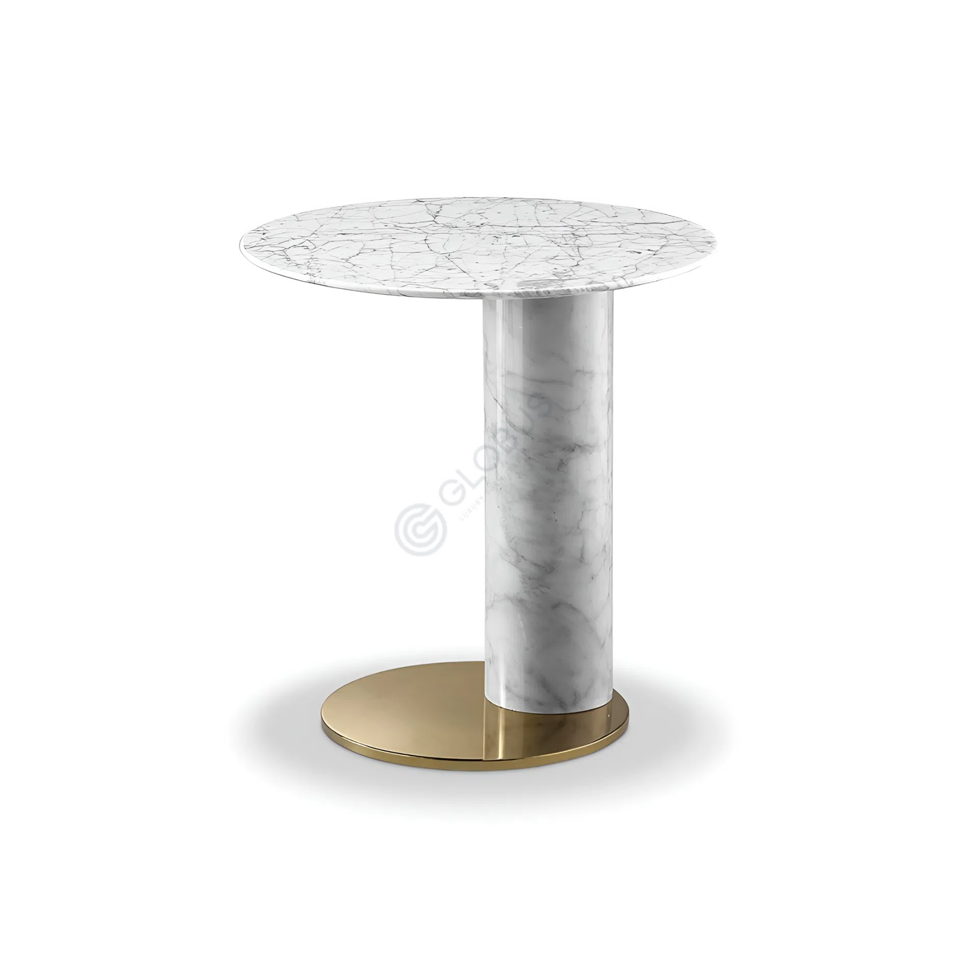 Опора предмета мебели изготовлена из прочной нержавеющей стали с изящным финишным покрытием, что обеспечивает ему стабильность и добавляет современный акцент. Чистота линий и гармоничное сочетание материалов подчеркивают принадлежность столика к актуальному современному стилю.