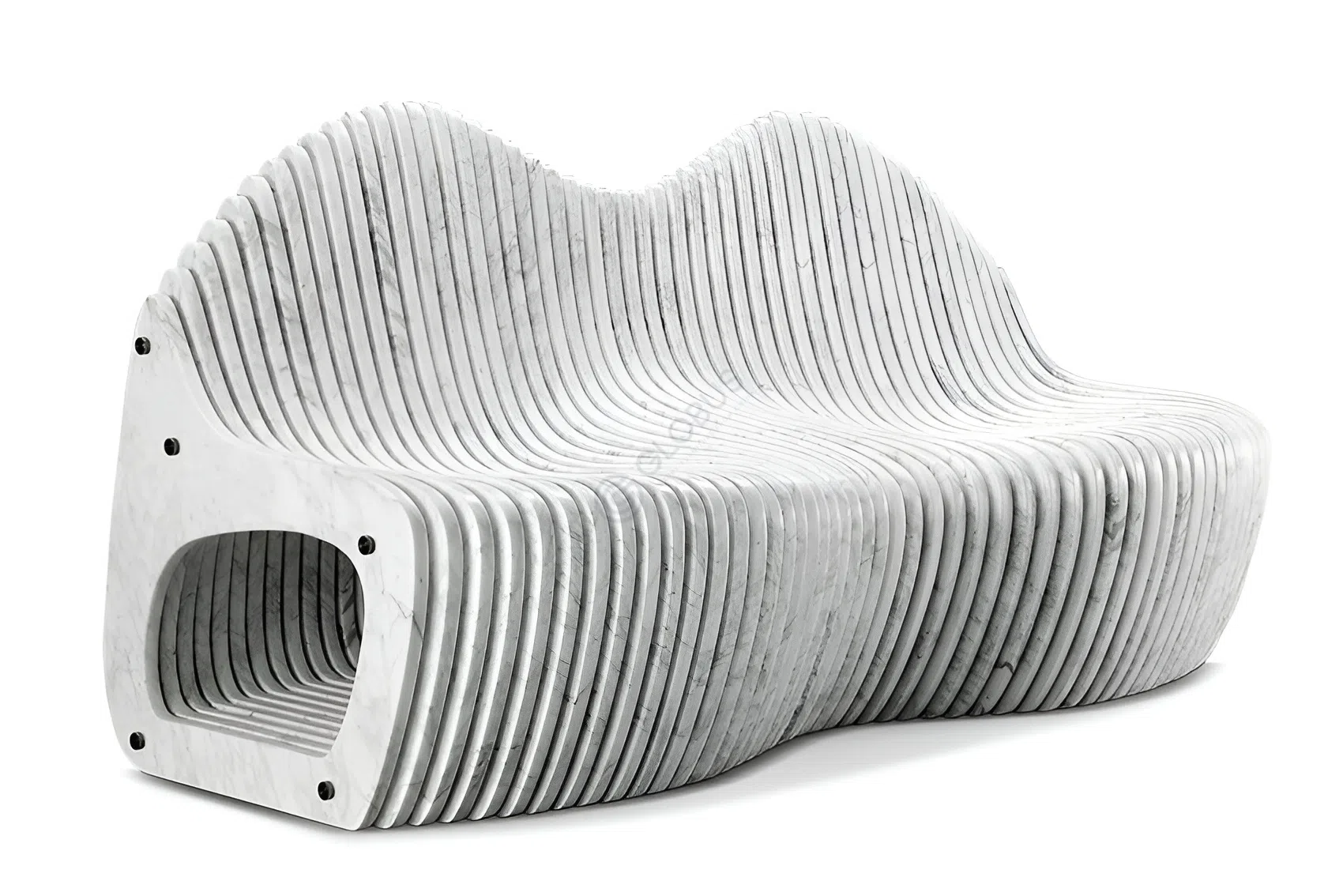 Этот предмет мебели переосмысливает привычные границы функциональности и искусства. Его форма представляет собой плавные изгибы, искусно высеченные из множества тонких пластин, сложенных вместе. Такой многослойный дизайн придает объекту выразительный, почти скульптурный вид, делая его доминантой в любом интерьере.