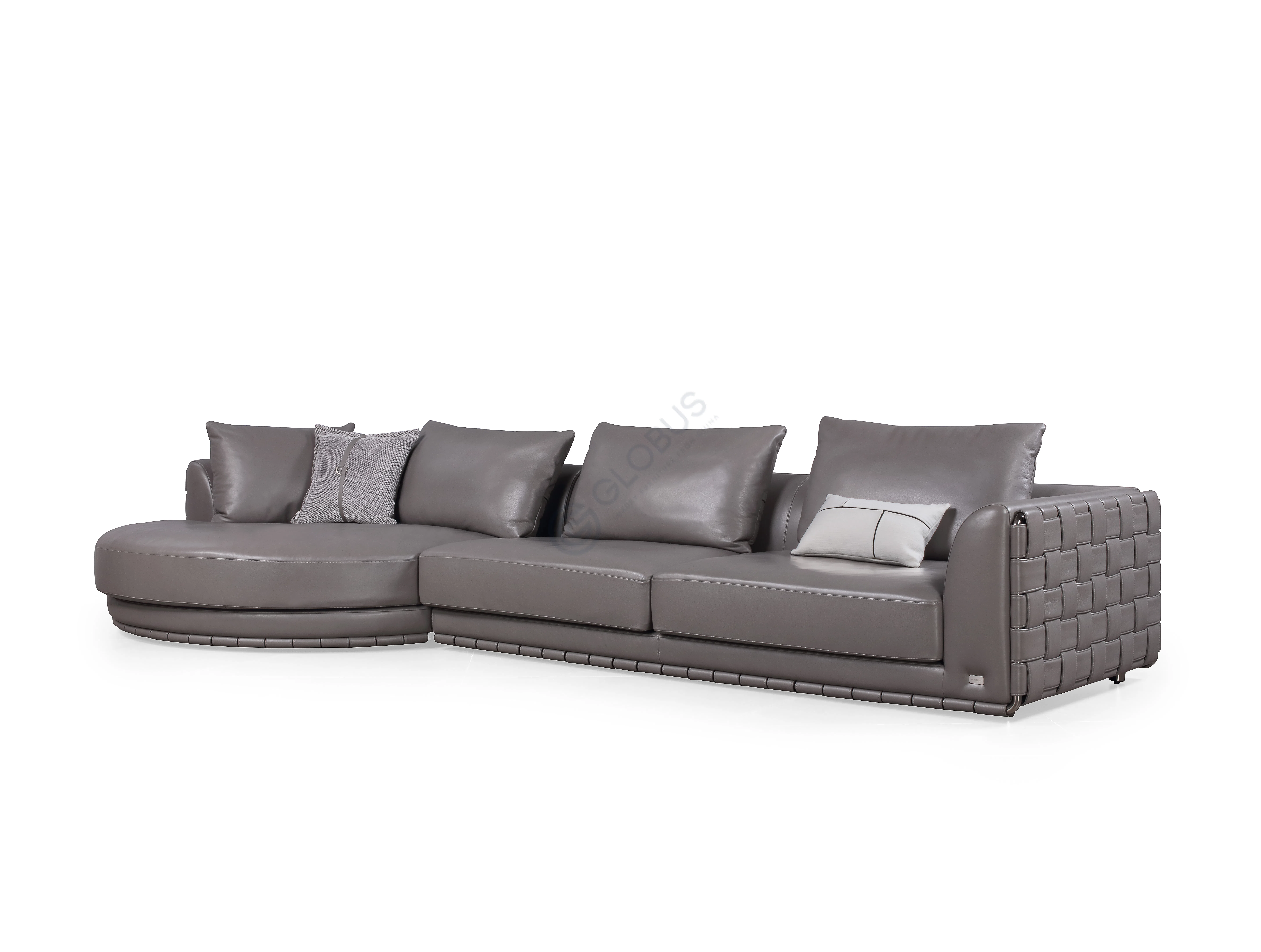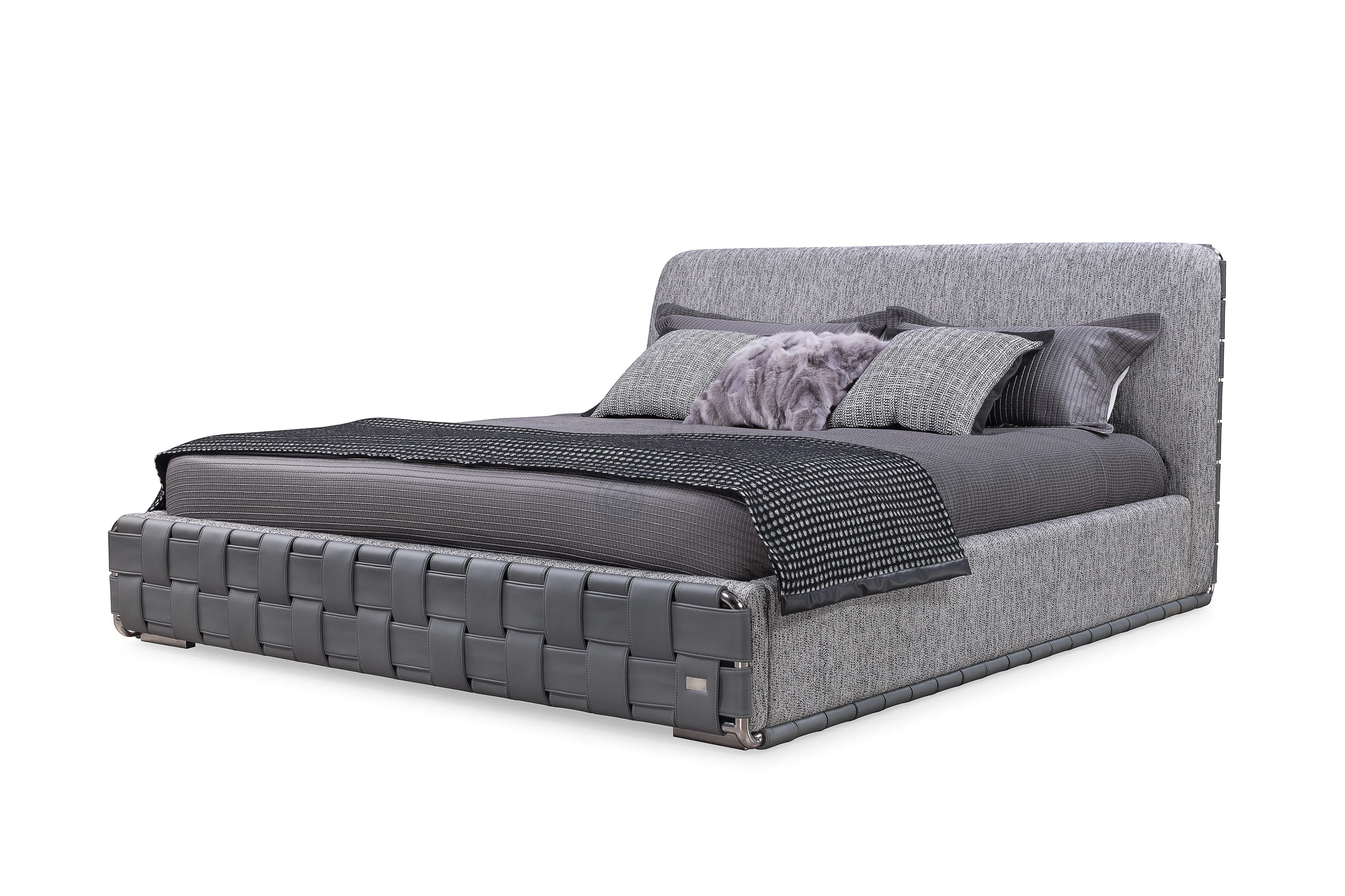 Мастерство исполнения очевидно в каждой детали. Каркас, тщательно изготовленный из натурального дерева и фанеры, обеспечивает надежность и долговечность. Объемная обивка из высококачественного текстиля дарит необыкновенное тактильное ощущение. Особое внимание привлекает боковая панель, выполненная в уникальной технике плетения, которая создает выразительную фактуру и добавляет изделию характерную черту. Тонкие акценты из нержавеющей стали дополняют общий облик, придавая ему утонченный вид.