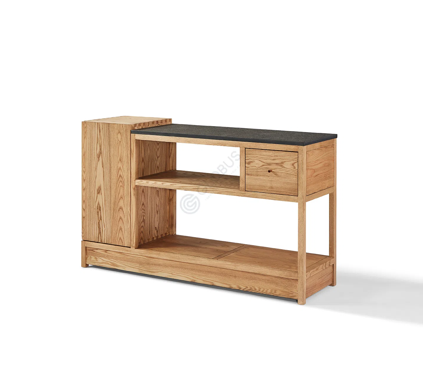 Основой служит массив натурального дерева, чей теплый оттенок и уникальная текстура привносят уют и природную элегантность. Верхняя поверхность украшена вставкой из натурального мрамора, придающего изделию изысканный и роскошный вид. Сочетание теплой древесины и прохладного камня создает приятный тактильный и визуальный контраст, подчеркивая высокое качество исполнения. Внутренние элементы конструкции, выполненные из фанеры, обеспечивают прочность и долговечность.