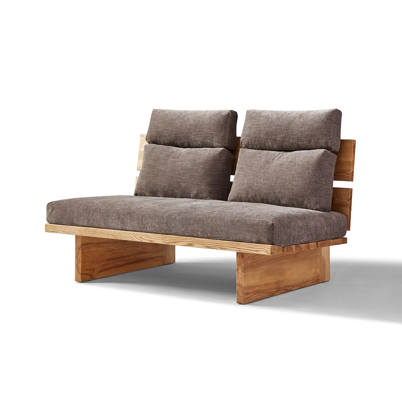 Основа изделия выполнена из натурального дерева, чья теплая текстура и прочность ощущаются в каждом изгибе каркаса. Этот природный элемент придает мебели особую основательность и долговечность. Мягкие части, представленные объемными подушками сиденья и спинки, обтянуты приятным на ощупь текстилем и наполнены нежнейшим пухом, обеспечивая исключительный комфорт.