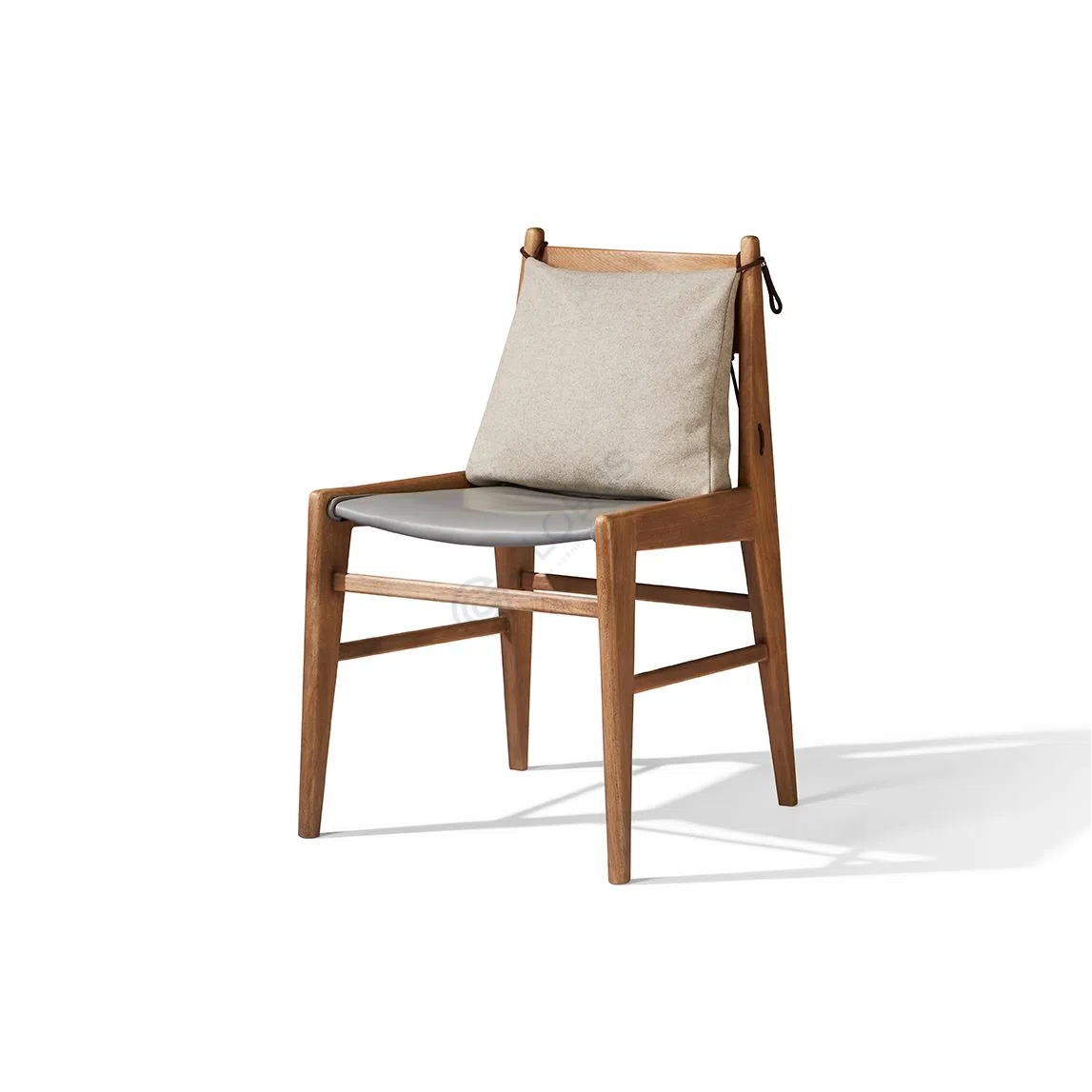 Каркас стула создан из отборного натурального дерева, демонстрируя природную красоту и неповторимую текстуру материала. Сиденье обтянуто экокожей на микрофибровой основе, обеспечивающей приятные тактильные ощущения и высокую износостойкость. Завершенный вид и дополнительный комфорт придает мягкая подушка из качественного текстиля, идеально вписывающаяся в общую концепцию изделия. Мастерство изготовления подчеркивает внимание к каждой детали.