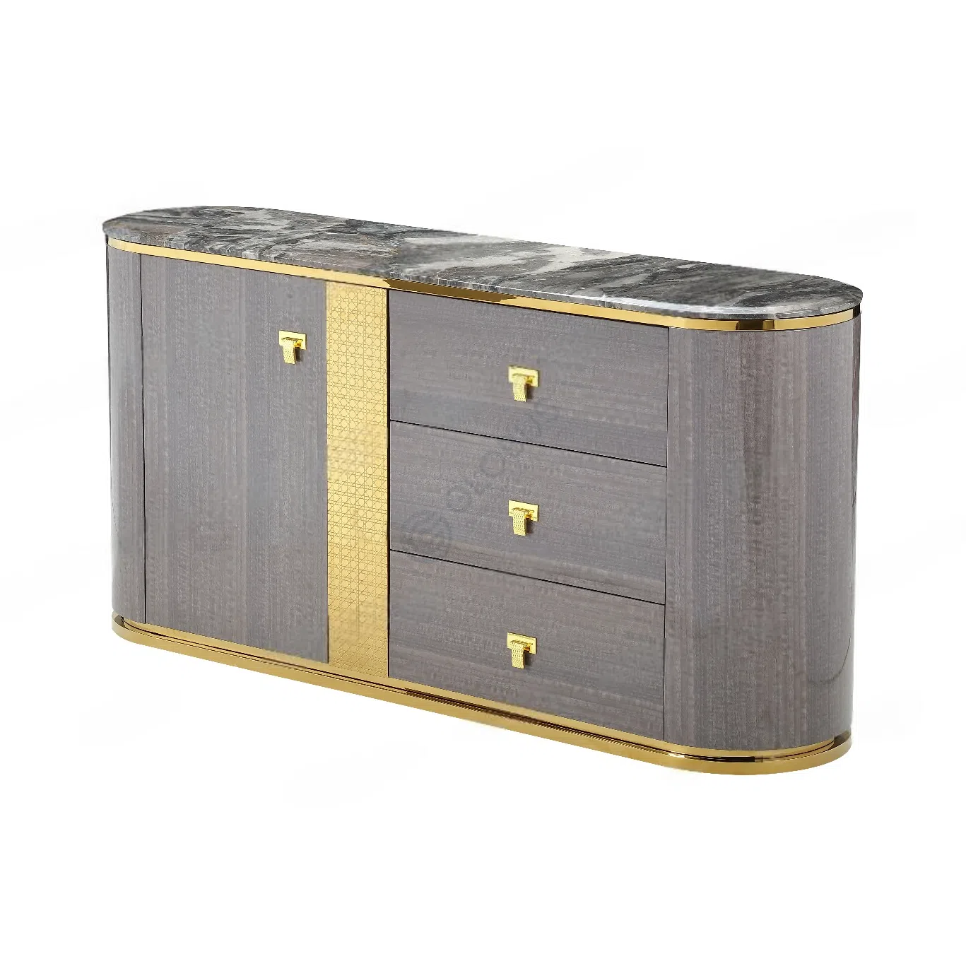 Привнесите современный элегантный стиль в свою спальню с нашей прикроватной тумбой из высококачественных материалов - металла, натурального дерева и натурального мрамора. Это прекрасное дополнение к вашей спальне, которое не только добавит функциональность, но и украсит вашу комнату своей изысканной формой и финишем.