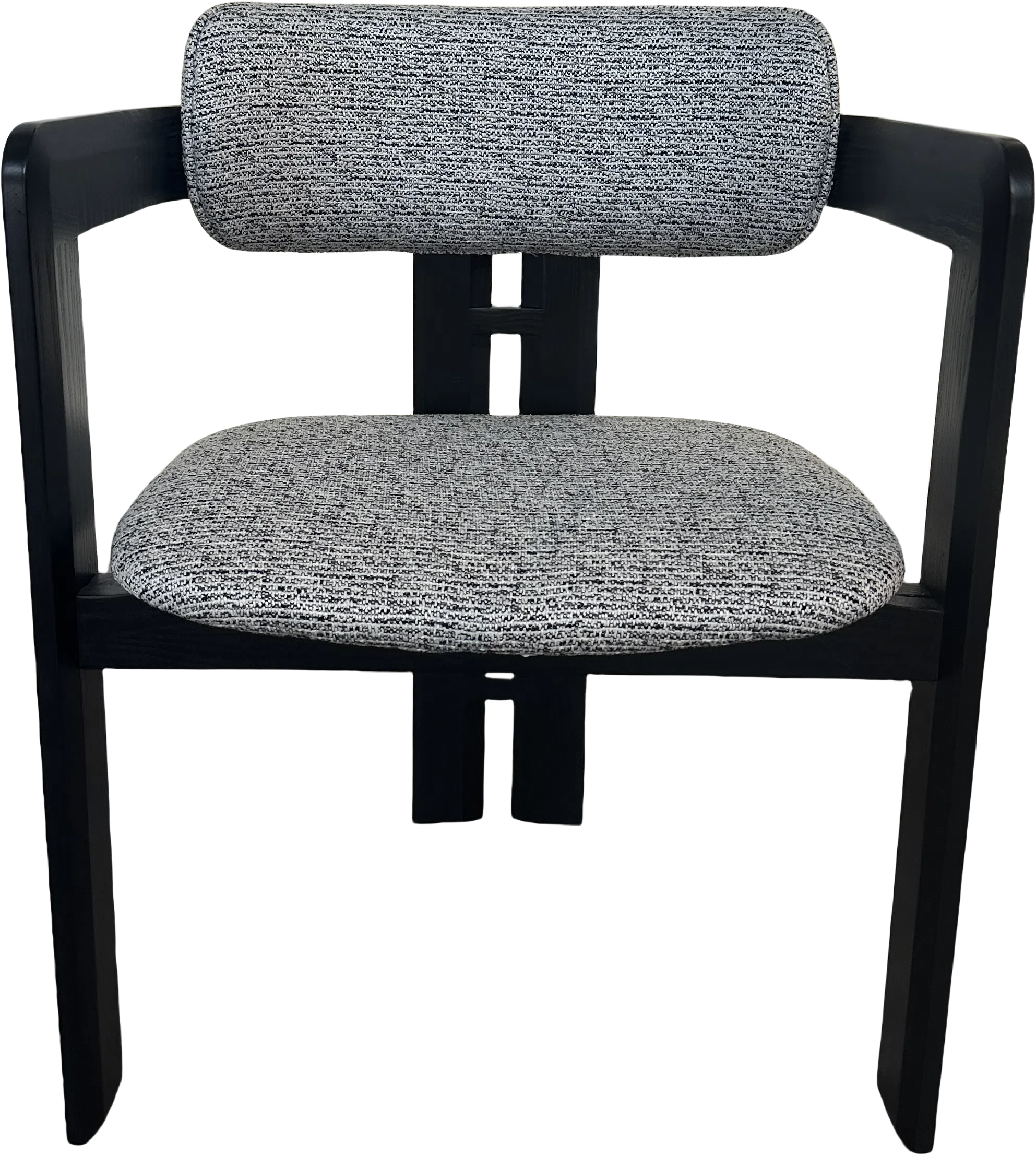 Мягкое сиденье и спинка обиты фактурным текстилем в нейтральном сером цвете. Благодаря этому стул становится особенно комфортным для ежедневного использования и легко вписывается в любые интерьеры столовой или кухни. Скругленные формы подлокотников и спинки создают ощущение защищённости и приглашения к уюту.