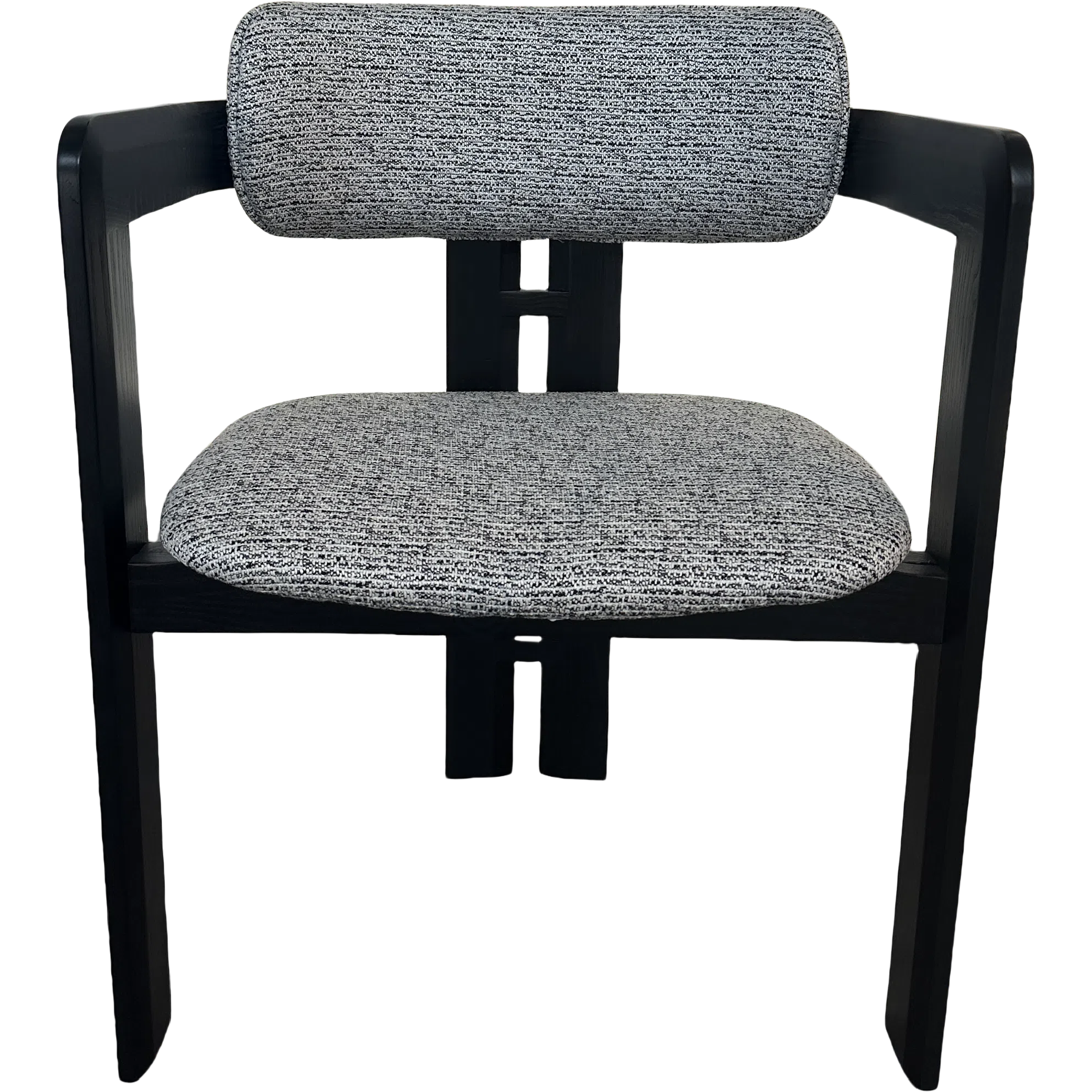 Мягкое сиденье и спинка обиты фактурным текстилем в нейтральном сером цвете. Благодаря этому стул становится особенно комфортным для ежедневного использования и легко вписывается в любые интерьеры столовой или кухни. Скругленные формы подлокотников и спинки создают ощущение защищённости и приглашения к уюту.