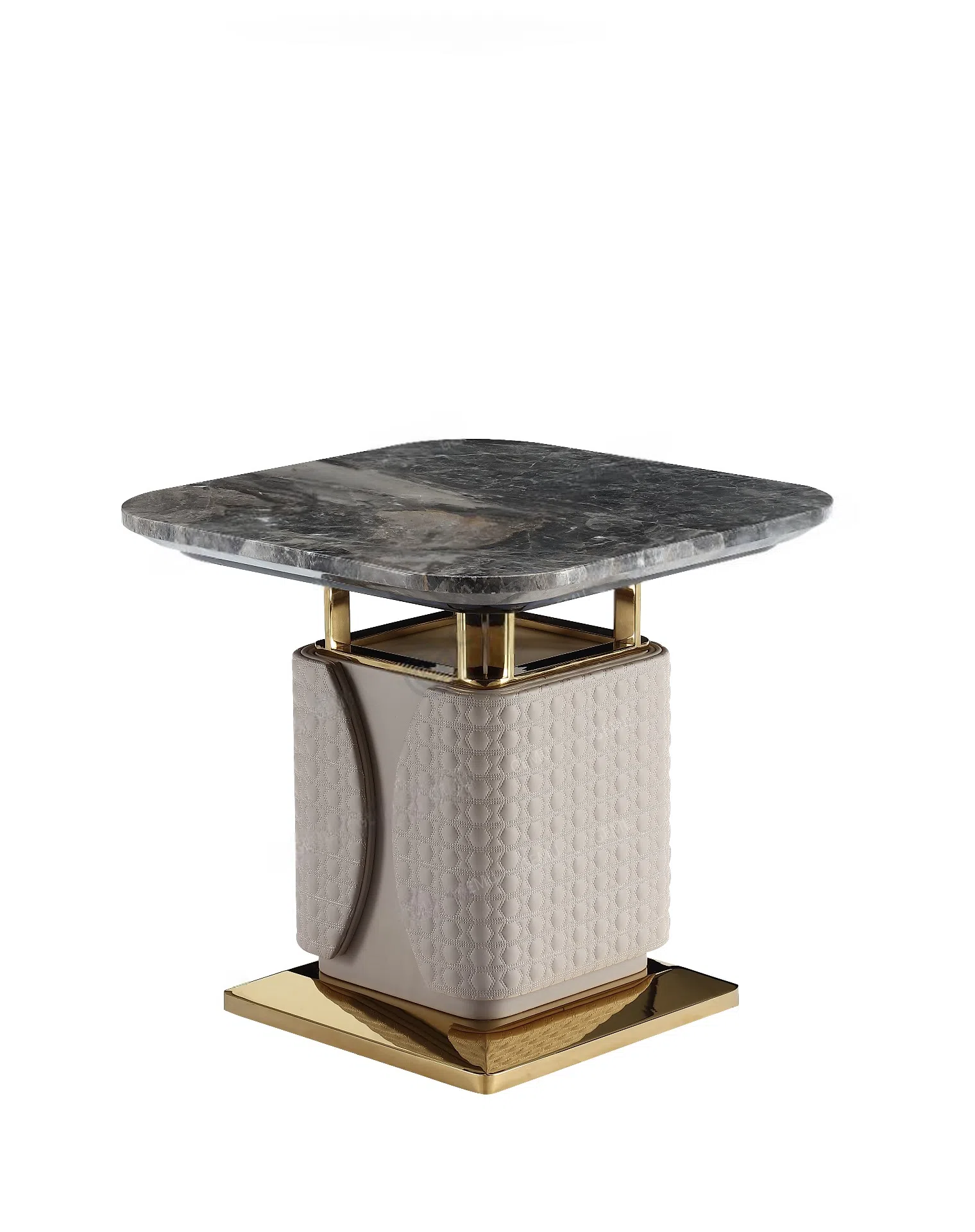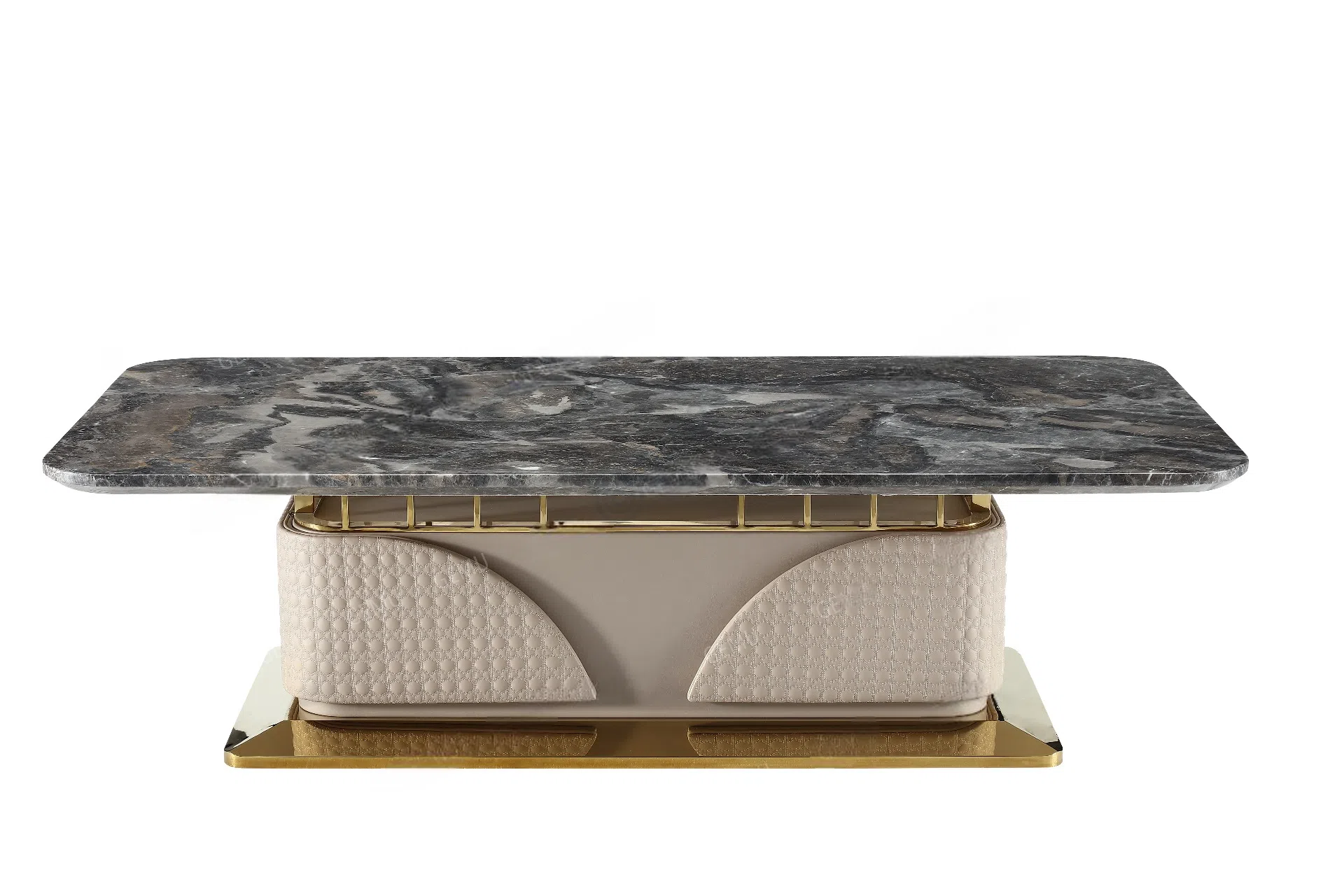 Изящность и функциональность объединены в нашем новом обеденном столе, который станет великолепным дополнением для столовой или кухни. Комбинируя натуральный мрамор, натуральное дерево, экокожу на микрофибре и металл, мы создали современный стиль, который привнесет элегантность в любое помещение.
