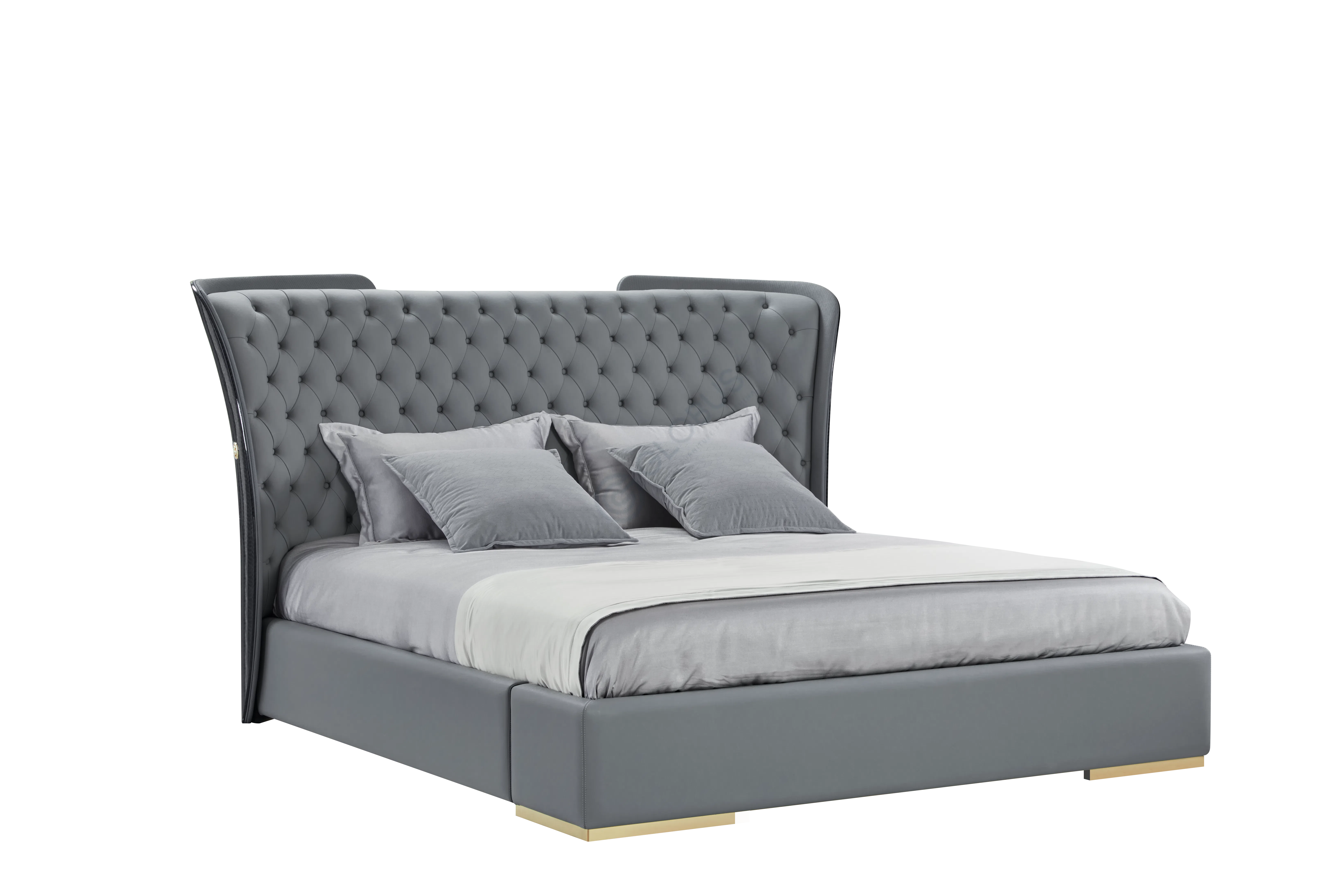 Каркас изделия выполнен из натурального дерева, обеспечивающего прочность и долговечность конструкции. В отделке использован металл, который придает силуэту изысканность и завершенность. Обивка из кожи или высококачественной экокожи на микрофибре дарит приятные тактильные ощущения и подчеркивает премиальный статус модели. Сочетание материалов создает гармоничный и благородный вид.