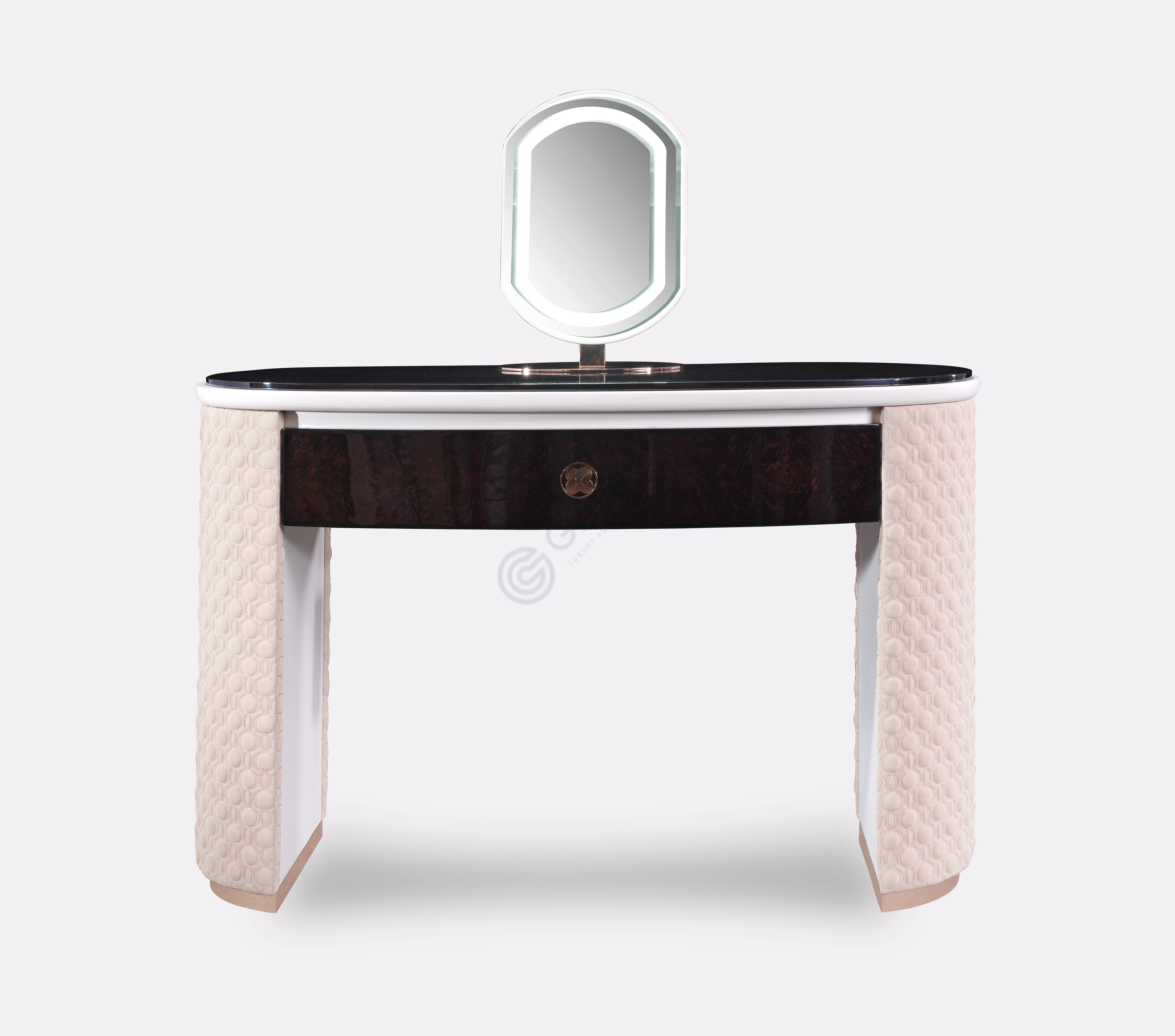 Экокожа на микрофибре, которая используется для отделки тумбы, придает ей изысканность и роскошь. Этот материал выбран не только по соображениям эстетики, но и для обеспечения долговечности и легкости ухода за изделием.