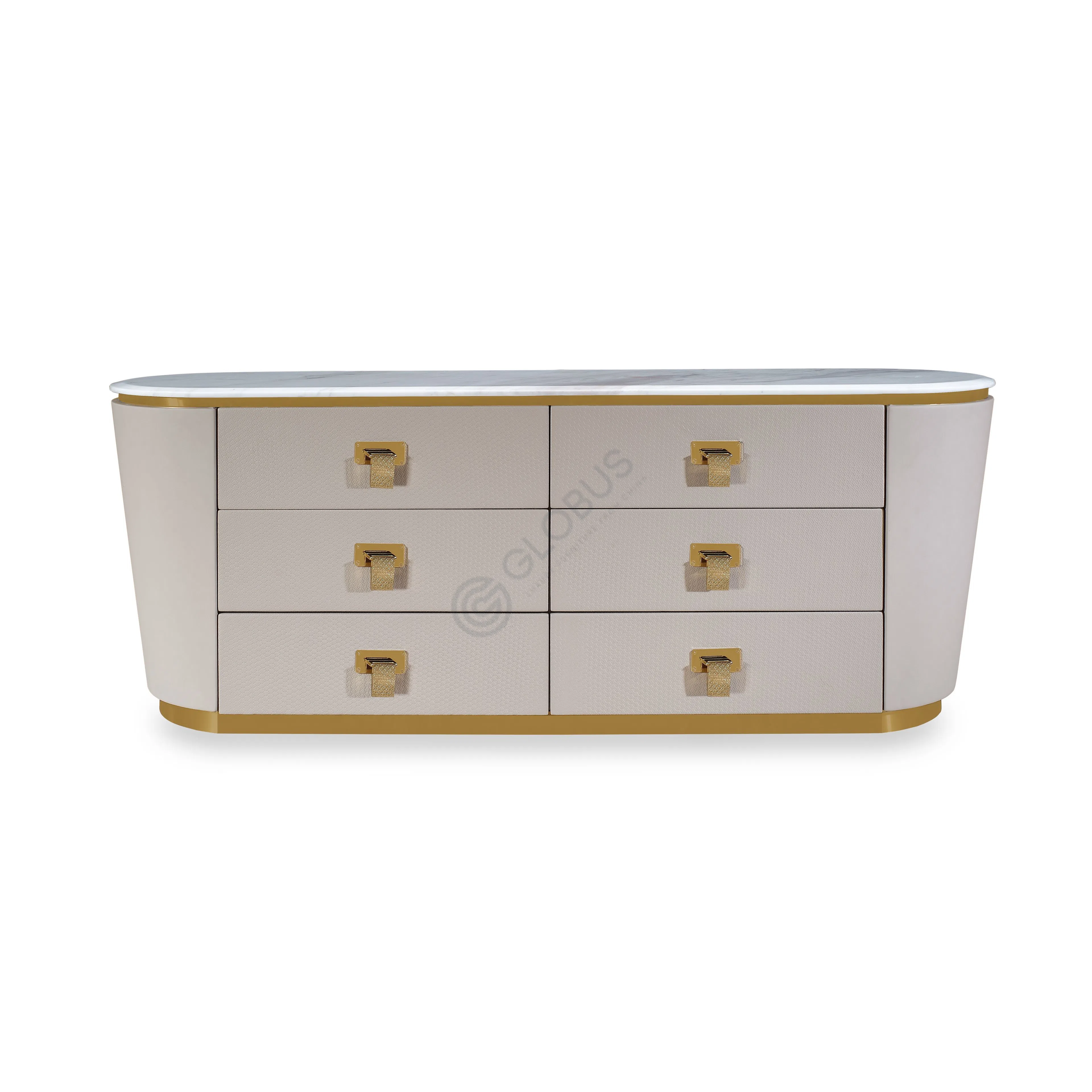 Натуральное дерево придает буфету долговечность и индивидуальность, создавая уютную и теплую атмосферу в вашем интерьере. Мраморная поверхность добавляет изысканности и элегантности, придавая буфету шикарный вид.