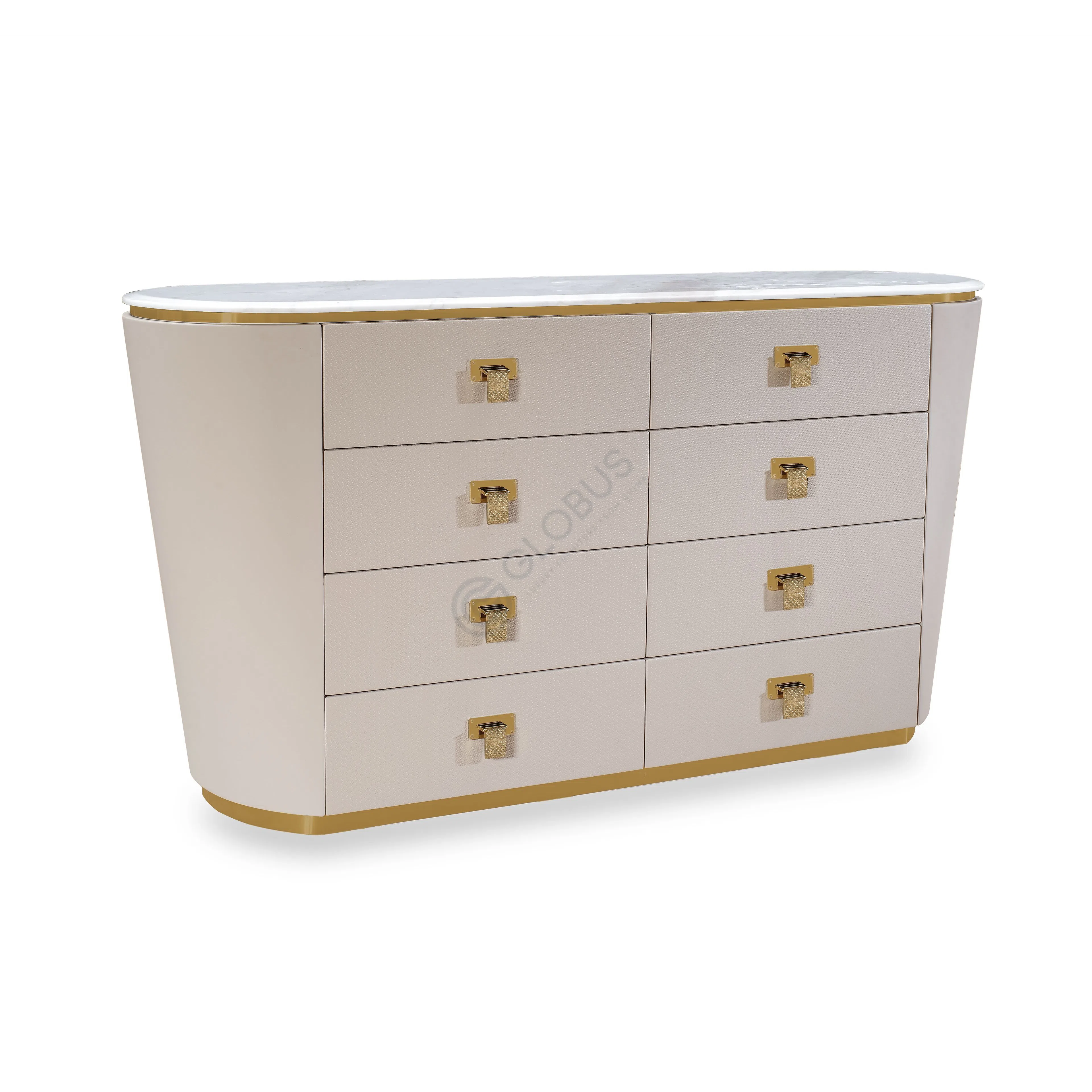 Изысканная и функциональная, эта современная ТВ тумба является истинным шедевром в мире дизайна интерьера. Изготовлена из натурального дерева и великолепного натурального мрамора, она придает комнате неповторимый шарм и элегантность. Экокожа на микрофибре добавляет изысканности, а металлические элементы придают дополнительную прочность и устойчивость.