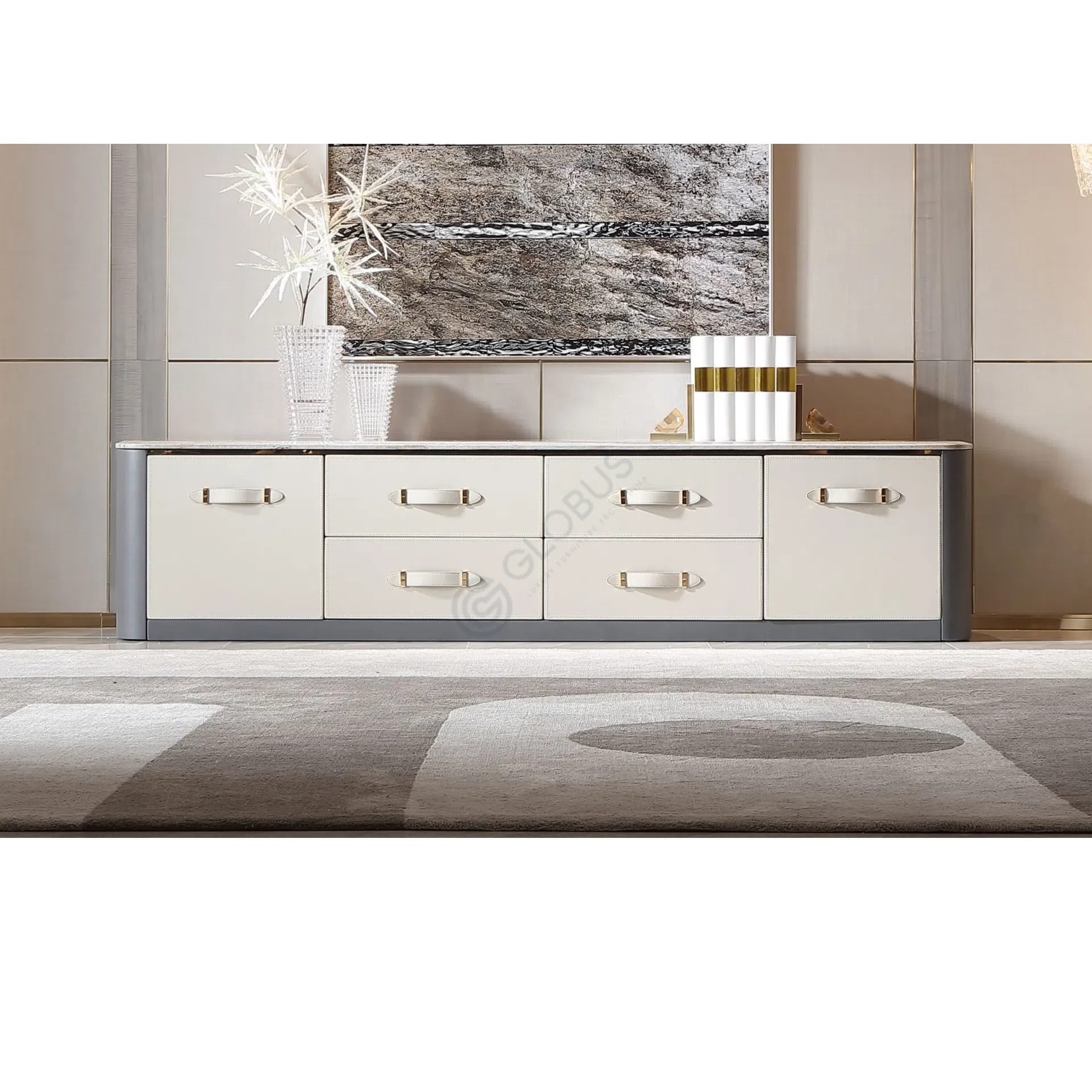 Эта потрясающая ТВ тумба из натурального дерева, натурального мрамора, экокожи на микрофибре и металла была создана для тех, кто ценит современный стиль в интерьере. Ее элегантный дизайн и роскошные материалы придадут вашей гостиной или спальне неповторимый шарм.