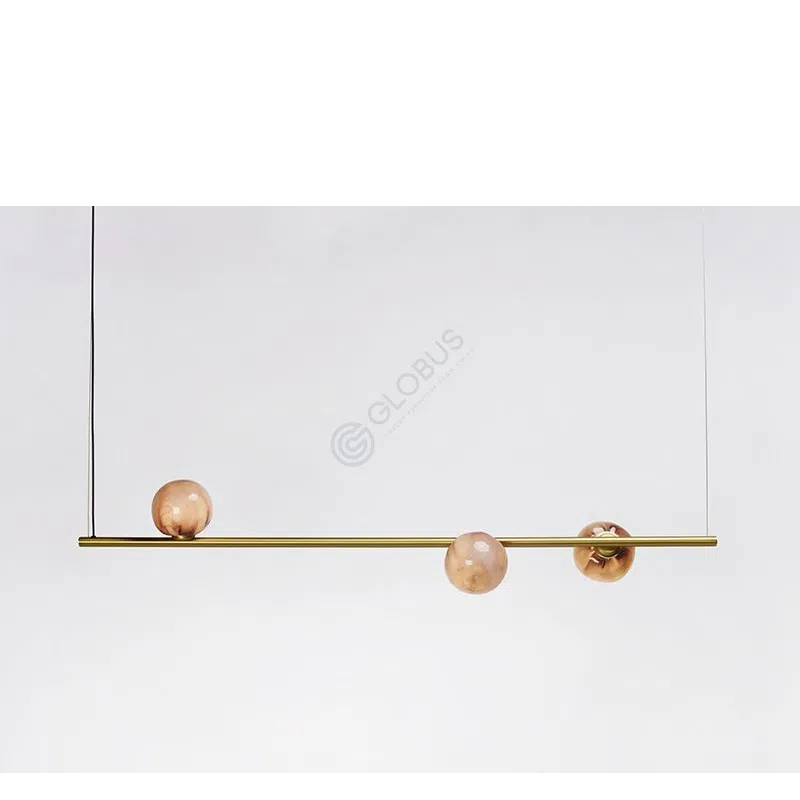 Этот подвесной светильник представляет собой изысканную композицию, в которой множество стеклянных сфер словно парят в воздухе на разной высоте. Каждая сфера обладает уникальным оттенком, создавая визуальную гармонию и глубину. Общий вид напоминает ожерелье из драгоценных камней, ниспадающее с потолка.
