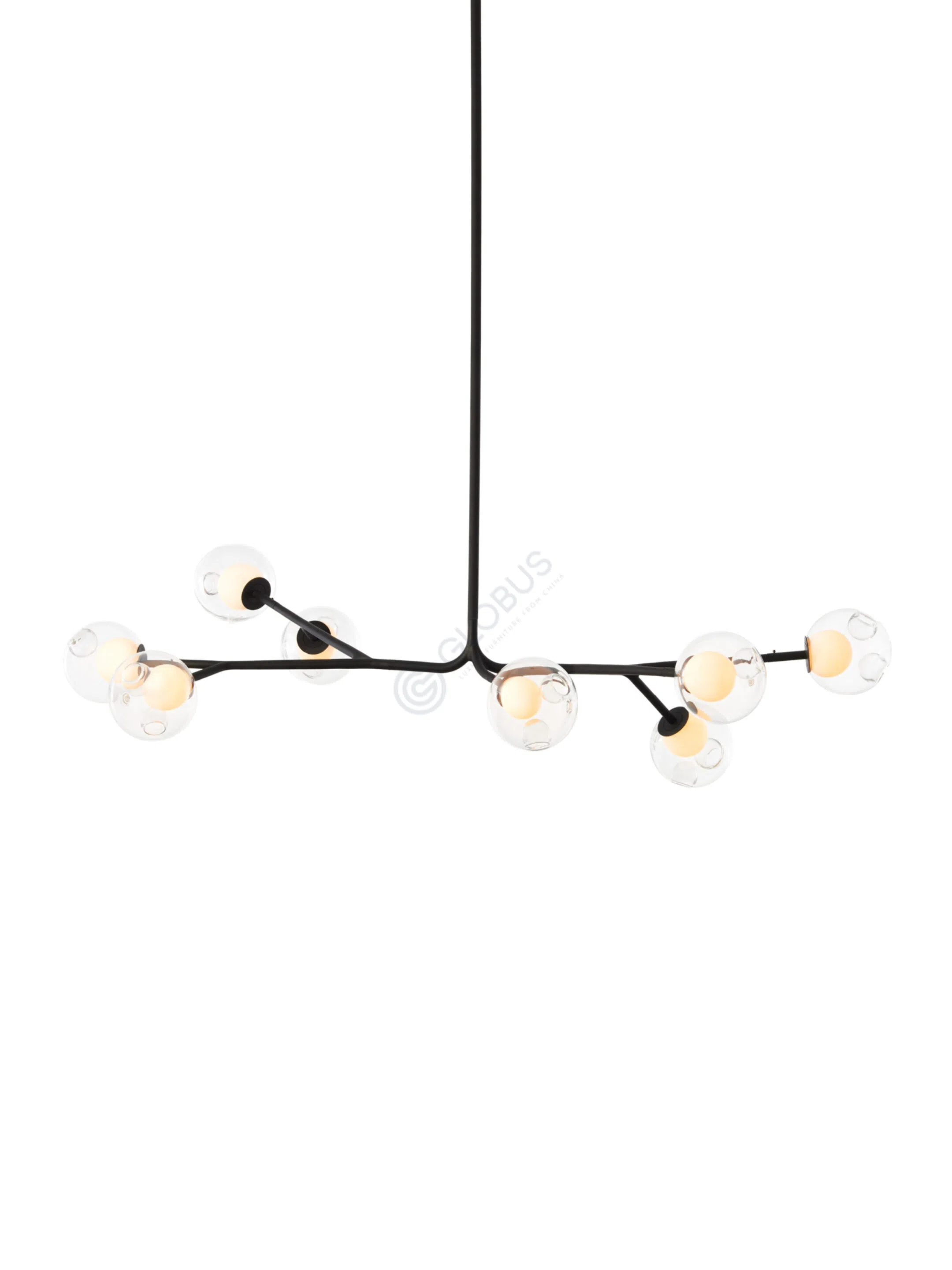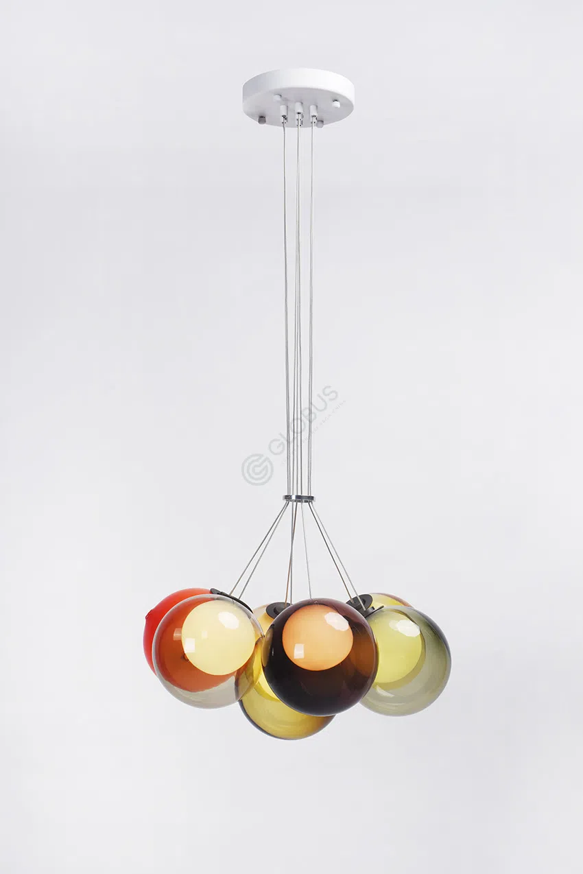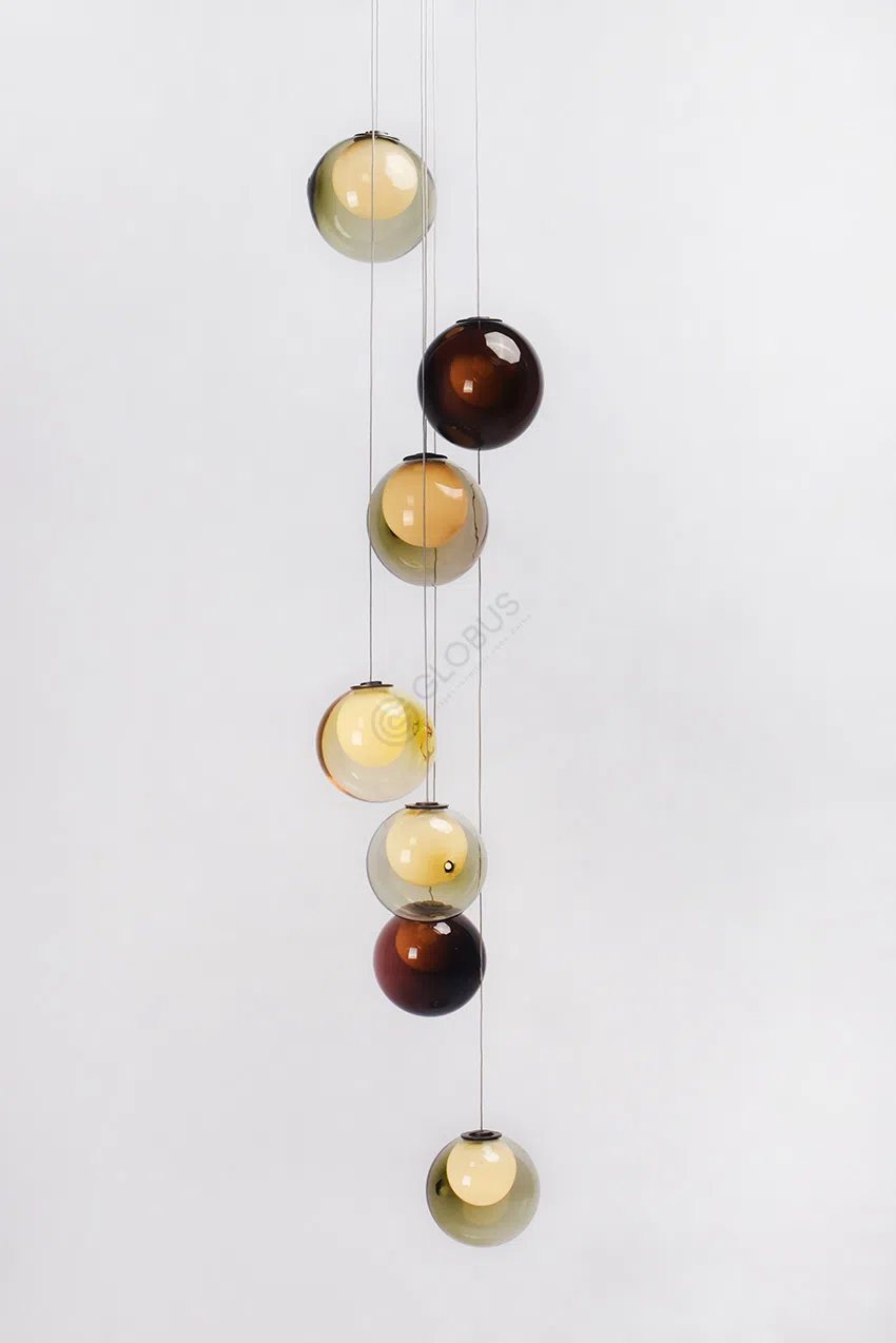 Множество источников света, расположенных в сферических плафонах, обеспечивает равномерное и приятное освещение. Свет, проходящий сквозь стекло, создает мягкое рассеивание, способствуя формированию комфортной и уютной атмосферы в помещении.