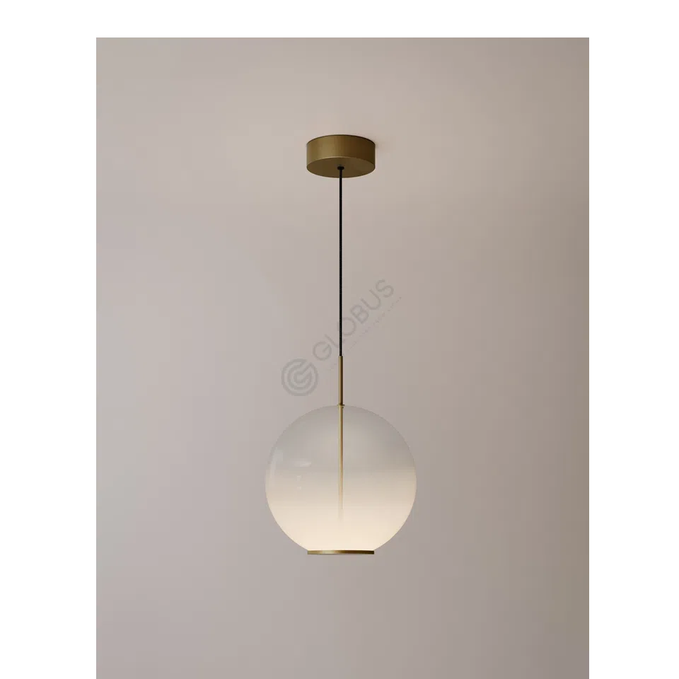 Центральным элементом дизайна является большой стеклянный плафон сферической формы. Благодаря особой технике обработки, стекло мягко рассеивает излучаемый свет, создавая приглушенное и комфортное свечение. Плавный переход от прозрачной части к матовой придает плафону дополнительный объем и визуальную легкость.