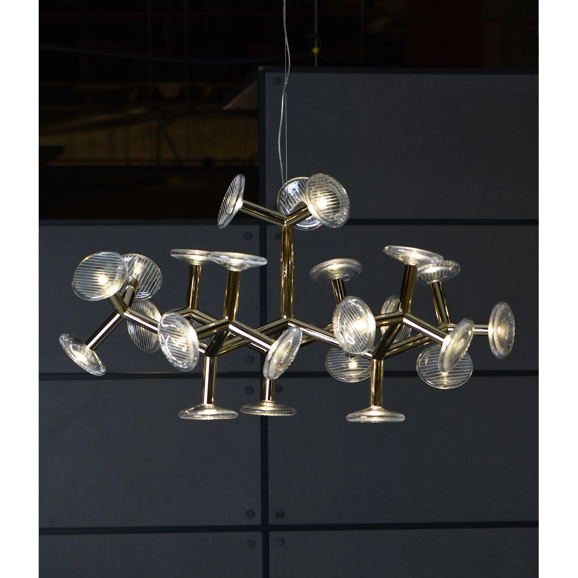 Этот подвесной светильник представляет собой изысканный акцент для современного интерьера. Его футуристическая форма, состоящая из множества световых элементов, направленных в разные стороны, приковывает взгляд и создает ощущение динамики в пространстве.