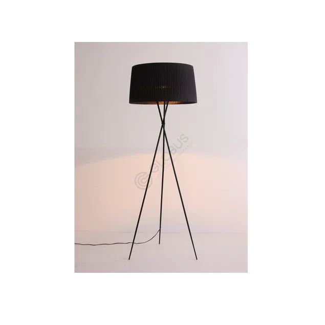 Основание выполнено из прочной углеродистой стали, формируя изящную и устойчивую опору в форме треноги. Этот материал придает конструкции актуальный вид и обеспечивает надежность. Контраст темной металлической базы и красочного текстильного абажура создает запоминающийся образ.
