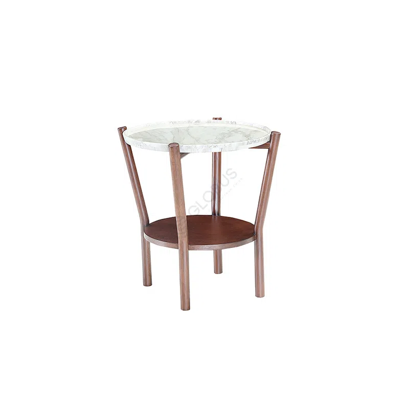 Этот журнальный столик является воплощением элегантности и функциональности. Идеально сбалансированный дизайн сочетает в себе тепло натурального дерева и холодную красоту мрамора. Фактура мрамора, каждый узор на которой уникален, придает этому предмету интерьера неповторимый характер, в то время как гладкие линии деревянного каркаса подчеркивают его современный облик.