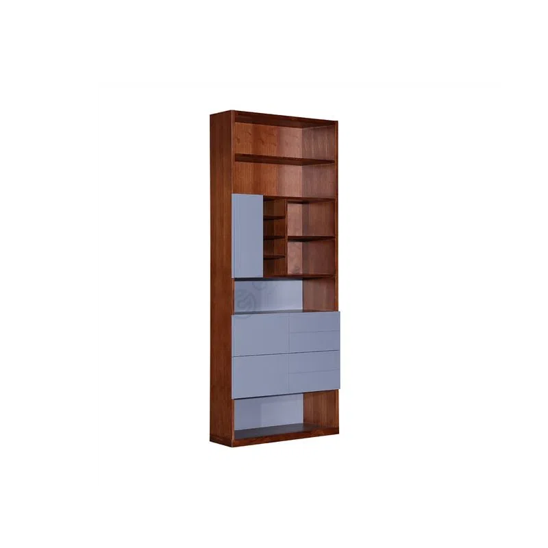 Его конструкция включает как открытые ниши для демонстрации любимых изданий или предметов искусства, так и вместительные закрытые секции для аккуратного хранения. Этот элемент обстановки одинаково уместен как в уютном кабинете, так и в стильной гостиной, предлагая практичное решение для организации коллекции.