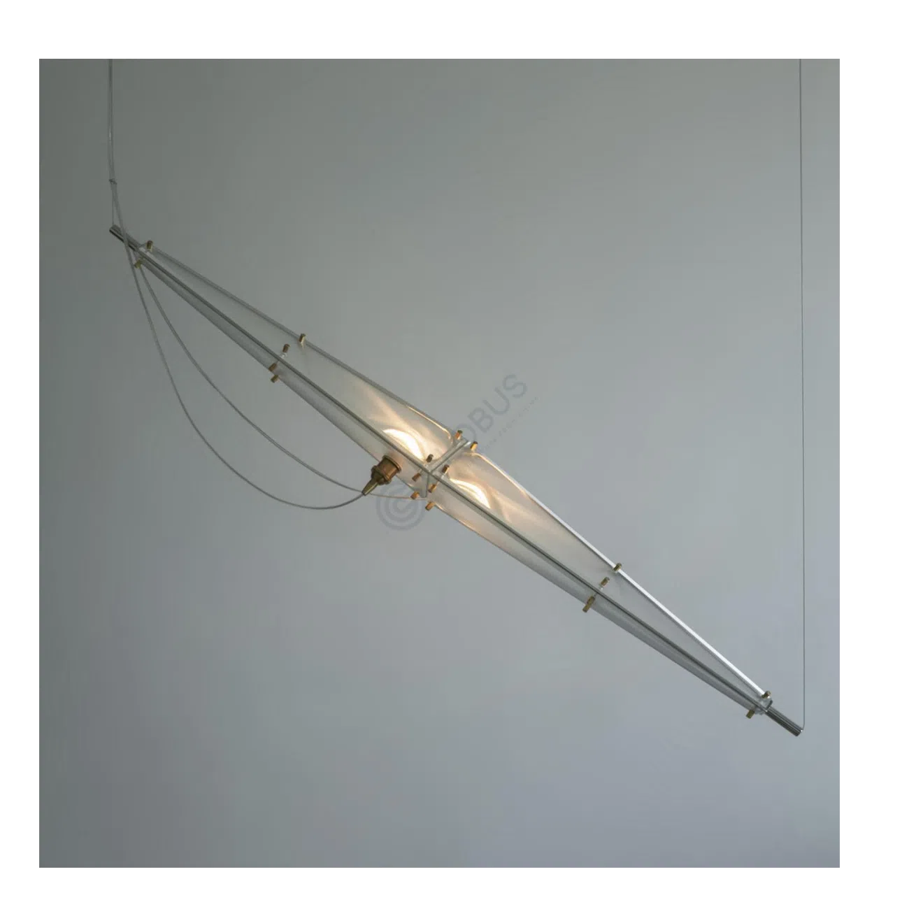 Мастерское сочетание материалов подчеркивает премиальность изделия. Основа из прочной углеродистой стали придает конструкции устойчивость и выразительность, в то время как прозрачное стекло корпуса окутывает источник света, создавая мягкое и рассеянное свечение.