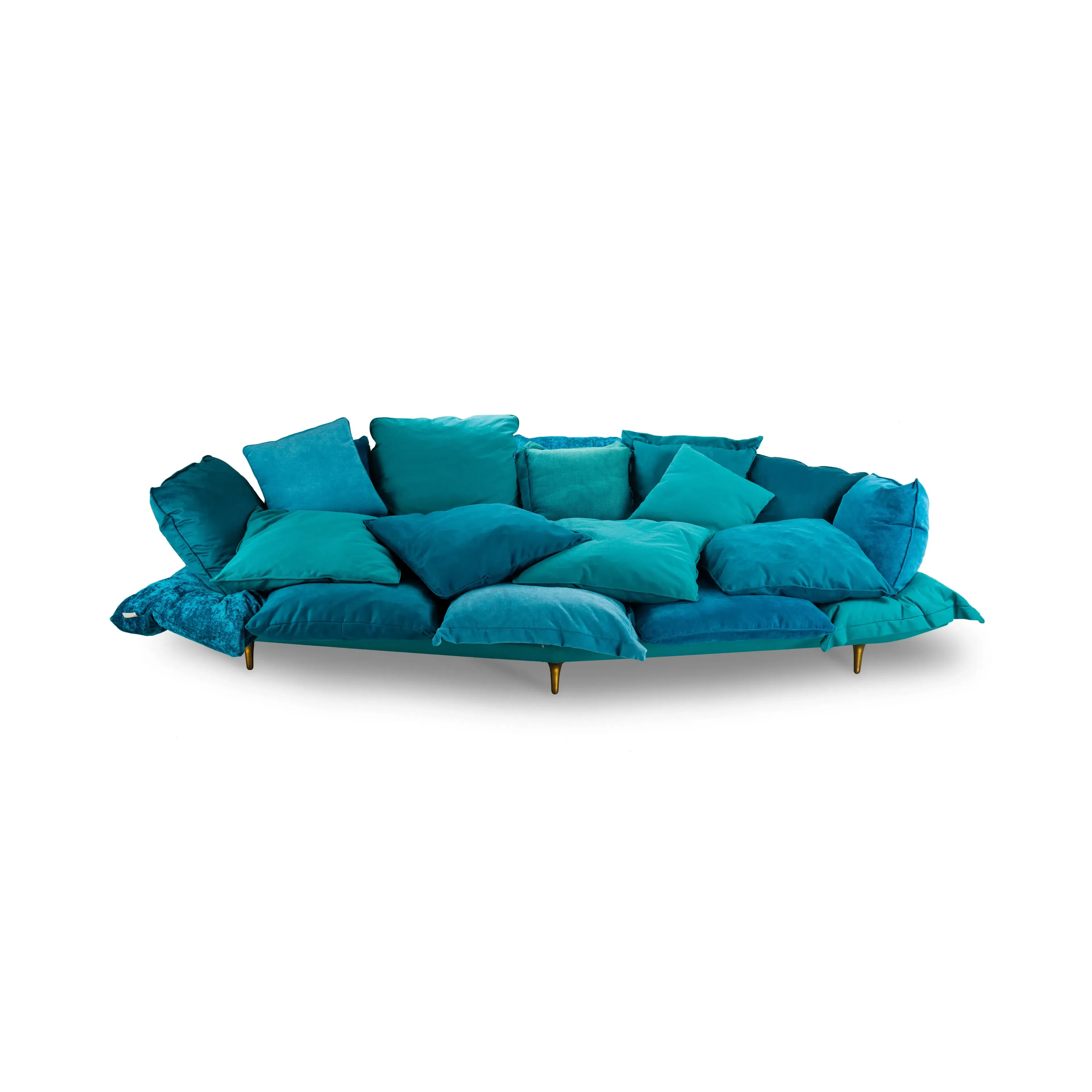 Объемный силуэт кресла создан множеством пышных подушек, приглашая погрузиться в абсолютный комфорт. Этот предмет мебели представляет собой оазис расслабления, идеально подходящий для современного пространства гостиной.
