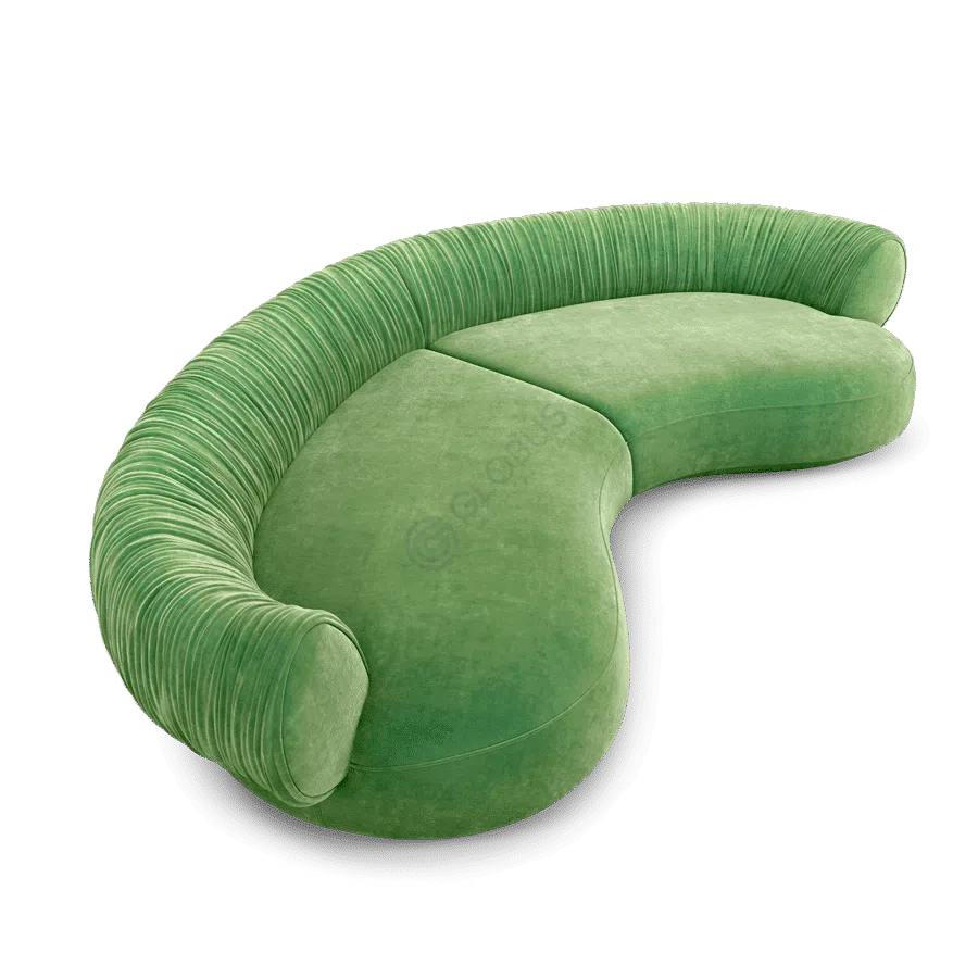 Особое внимание привлекает спинка, оформленная выразительной плиссировкой. Этот декоративный элемент придает изделию уникальный характер и изысканность, подчеркивая его премиальный статус. Объемное сиденье обеспечивает исключительный комфорт, идеально адаптируясь к изгибам тела.