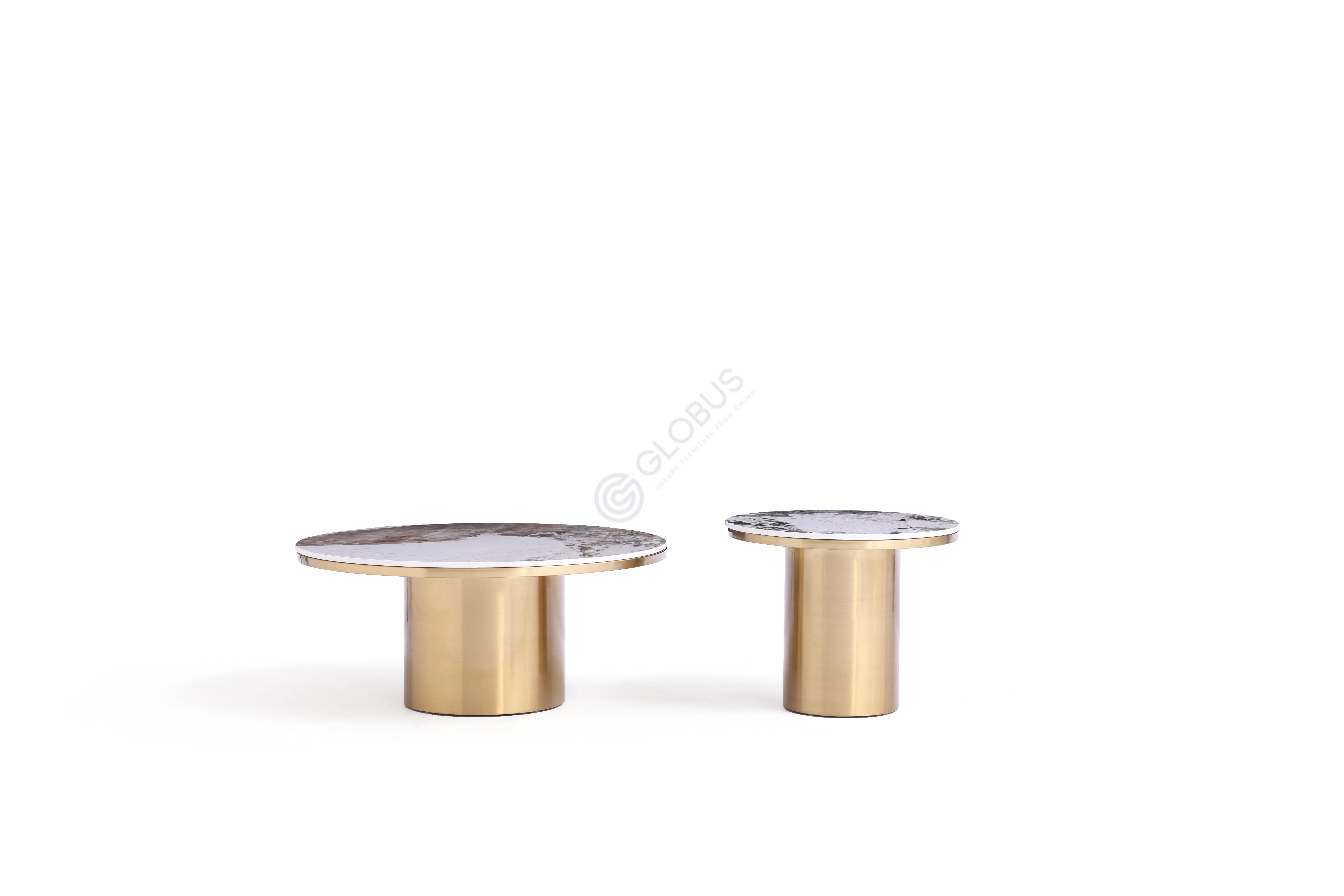 Этот элегантный угловой столик объединяет грациозность и практичность, подчеркивая характер каждого интерьера. Сочетание стойкой нержавеющей стали с благородной текстурой спеченного камня придает данному предмету мебели универсальность в использовании. Утонченный золотистый оттенок основания гармонично дополняется столешницей в мраморном стиле, делая его не только функциональным, но и декоративным решением для современных жилых пространств. Минималистичный дизайн позволяет этому угловому столику легко вписаться в различные стилистические концепции, а качественные материалы гарантируют долговечность и легкость в уходе.