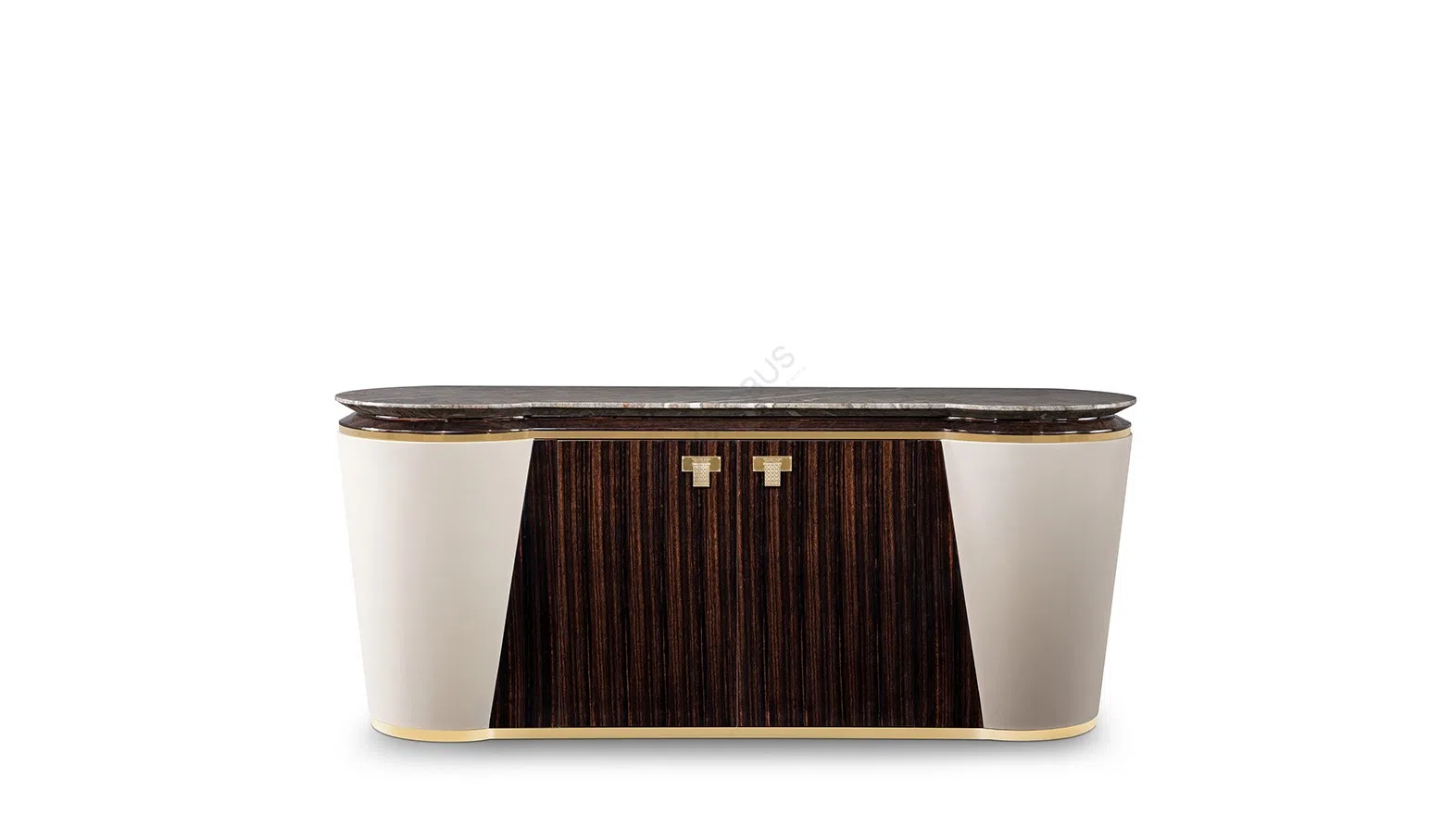 Основа конструкции выполнена из натурального дерева и прочной фанеры, гарантируя надежность и долговечность. Обивка сочетает практичность искусственной или экологичной кожи, приятной на ощупь и простой в уходе. Элементы из нержавеющей стали добавляют современный штрих и завершают образ.