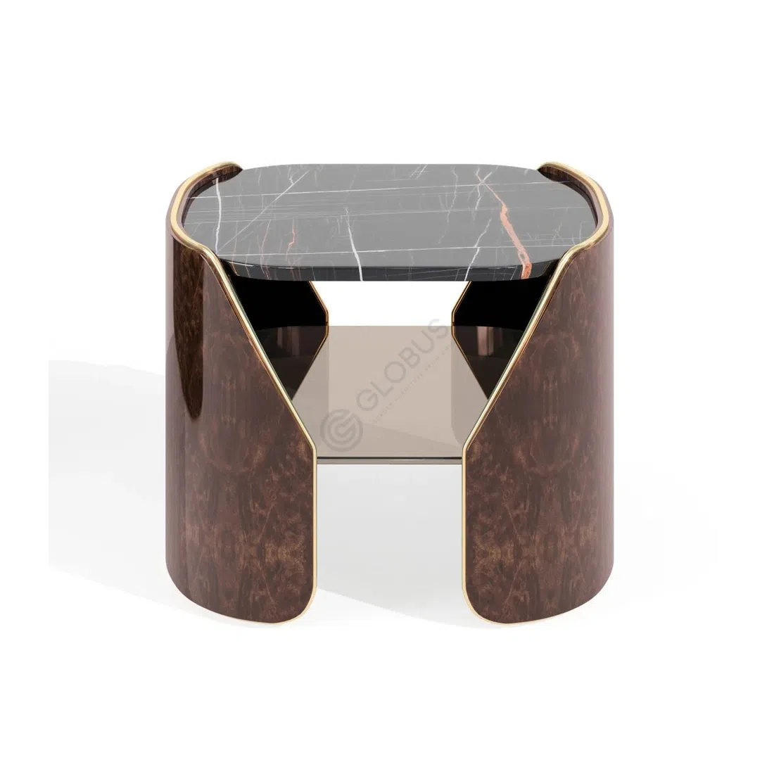 Журнальный столик сочетает изысканность натурального мрамора и строгость металлических элементов. Столешница выполнена из мрамора, что придает изделию элегантный внешний вид и прочность. Конструкция дополнена шпонированными деталями и вставками из фанеры, обеспечивающими гармонию текстур и долговечность. Лаконичный дизайн с четкими линиями делает этот столик подходящим для современных интерьеров, подчеркивая их стиль и функциональность.