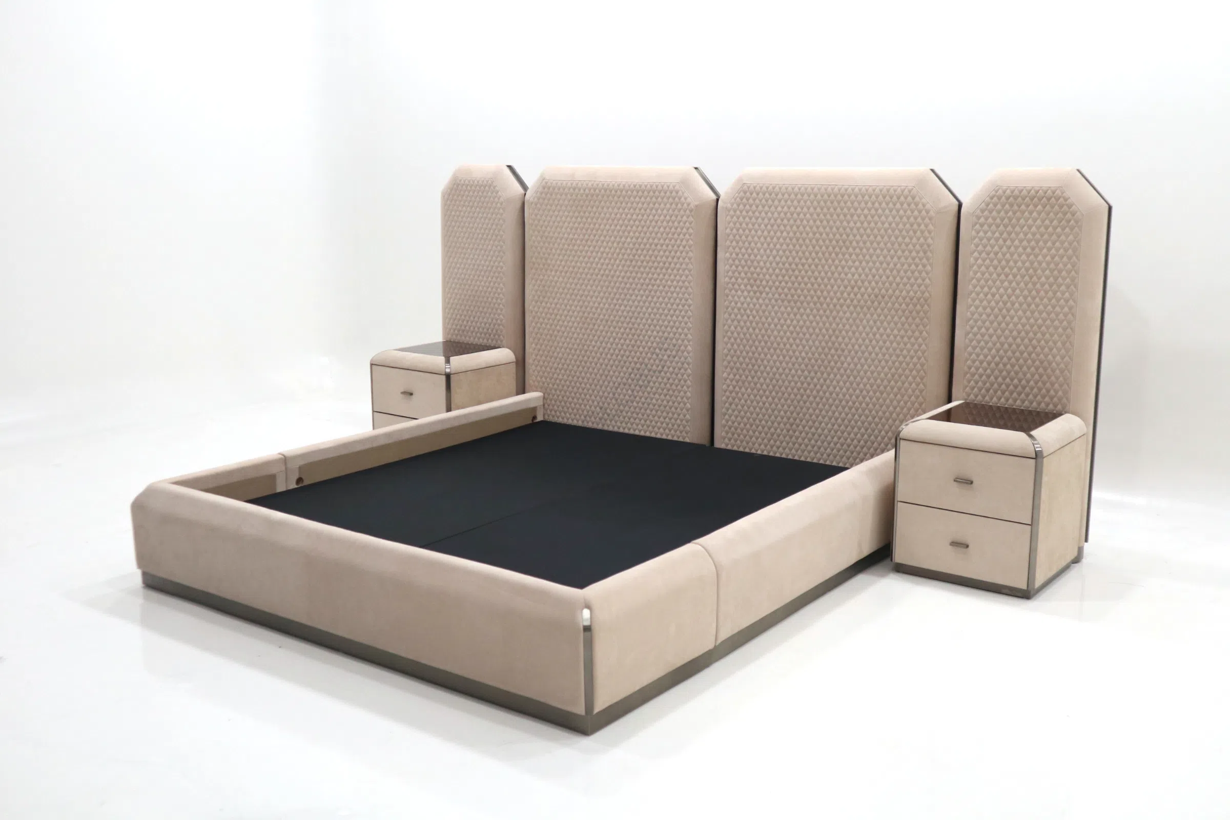 Материалы премиального уровня подчеркивают статус предмета. Каркас из прочного МДФ обтянут искусственной кожей на микрофибре, приятной на ощупь и визуально безупречной. Использование натурального шпона добавляет теплоты и уникальной текстуры поверхности.