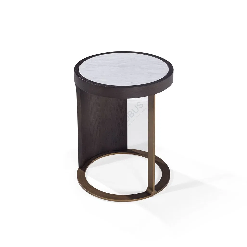 Этот элегантный журнальный столик станет выразительным дополнением к интерьеру современной гостиной или офиса. Основание изделия выполнено из высококачественного натурального дерева темного оттенка, что добавляет изысканности и теплоты его внешнему виду. Столешница из натурального мрамора, с тонкими прожилками, придает ощущение роскоши и стабильности. Аккуратные металлические вставки не только служат надежным соединением элементов, но и добавляют лаконичности конструкции. Обтекаемая овальная форма и продуманный дизайн делают этот столик функциональным и привлекательным акцентом в любом помещении.