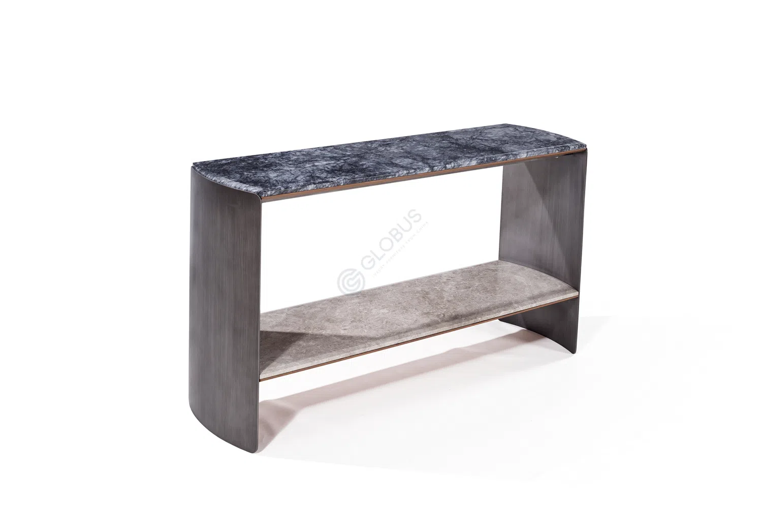 Верхняя часть стола представляет собой искусное сочетание натурального мрамора. Здесь встречаются два вида камня с различным узором и оттенком, образуя уникальную поверхность. Это природное великолепие добавляет глубины и характера каждому экземпляру, делая его по-настоящему особенным.