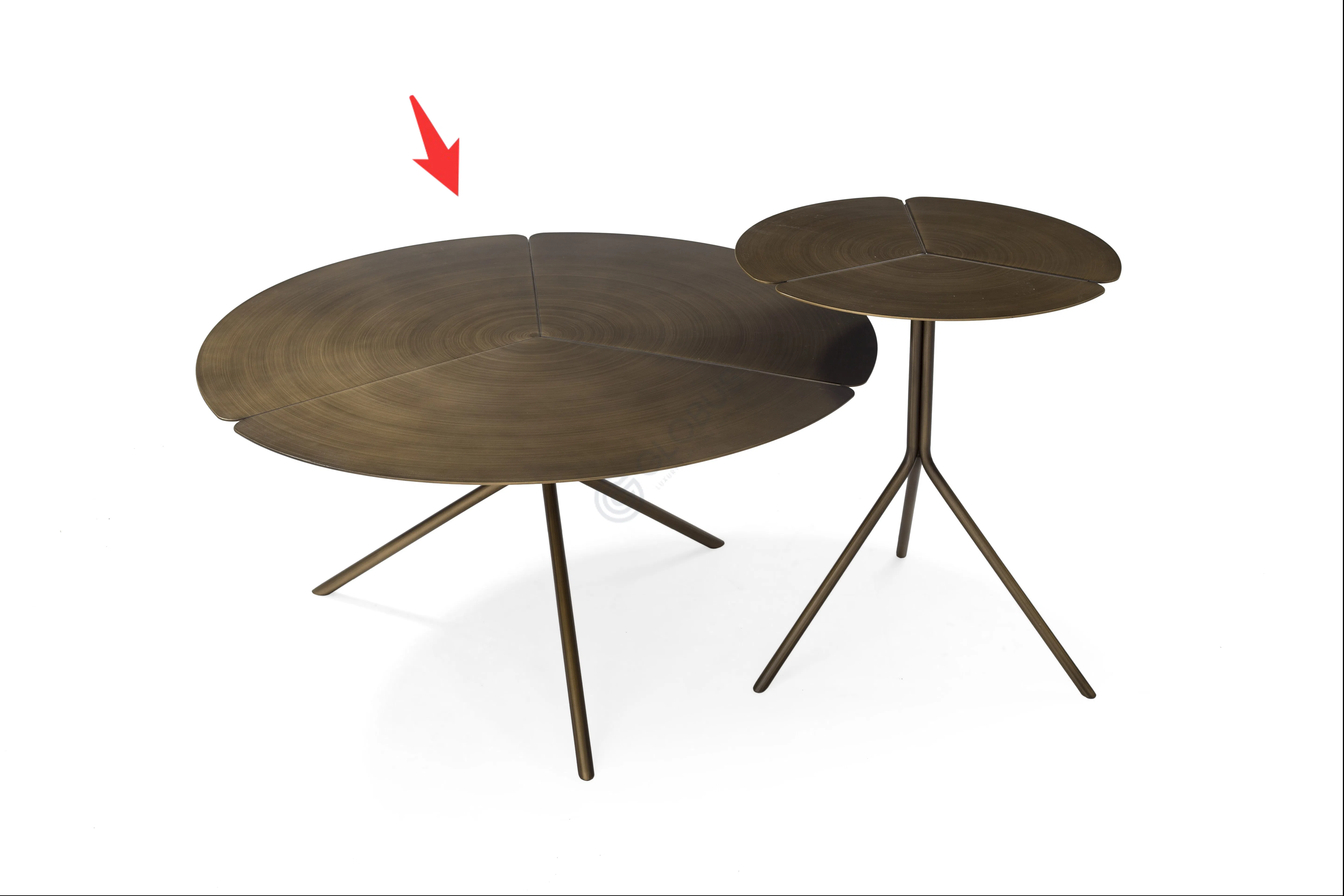Позвольте себе прикоснуться к совершенству формы. Этот угловой столик, созданный из металла, воплощает собой современную элегантность. Его уникальная столешница, искусно разделенная на три сегмента, несет в себе изящество природного мотива, напоминая о лепестках или изгибах. Текстура поверхности придает материалу глубину и благородный вид.