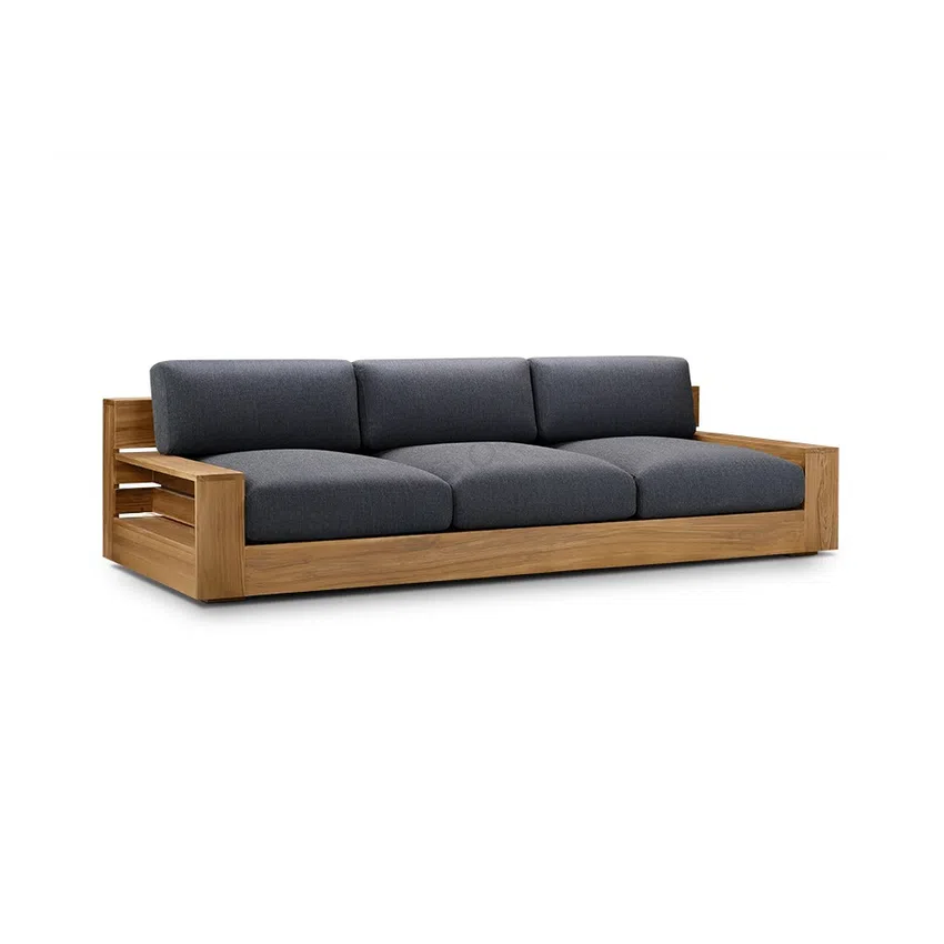 Основание предмета выполнено из массива натурального дерева, чей теплый оттенок и выразительная текстура придают изделию особую привлекательность. Этот материал известен своей долговечностью и устойчивостью к внешним воздействиям, что делает пуф надежным выбором для эксплуатации на открытом воздухе.