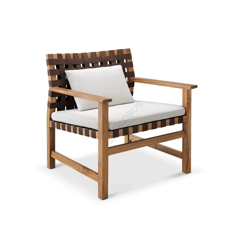 Каждый элемент этого дивана призван обеспечить максимальный комфорт. Объёмные подушки сиденья и спинки приглашают расслабиться, предлагая идеальное место для неспешных бесед или уединенного отдыха под открытым небом. Интегрированные боковые платформы из дерева добавляют функциональности, служа удобной поверхностью для напитков, книг или декоративных элементов, расширяя возможности использования предмета.