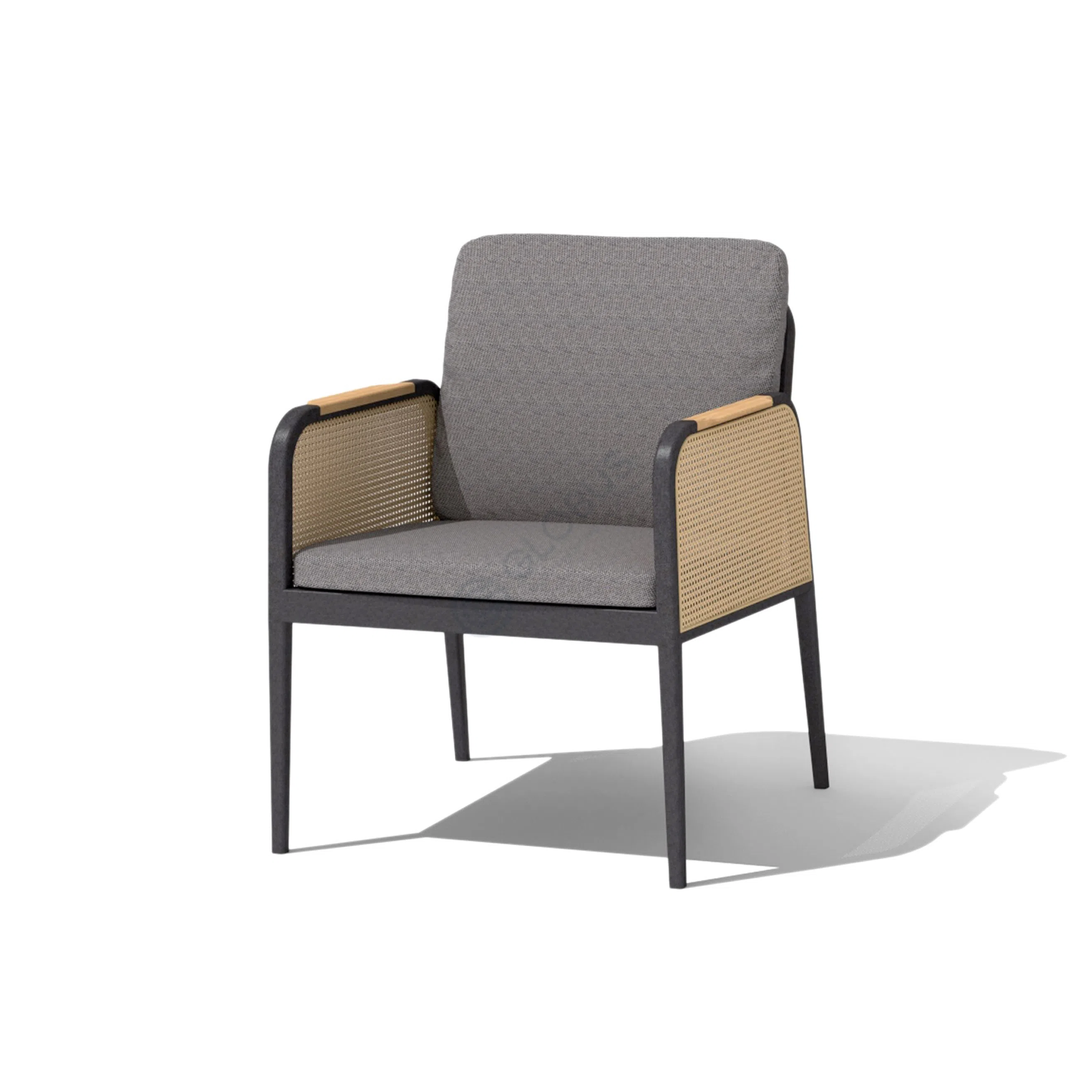 Уличное кресло сочетает в себе элегантность и комфорт, создавая идеальное место для отдыха на свежем воздухе. Каркас из алюминия обеспечивает прочность и долговечность, а текстильная обивка добавляет мягкость и уют. Натуральное дерево и искусственный ротанг придают изделию стильный и современный вид, гармонично вписываясь в любой экстерьер. Это кресло станет изысканным дополнением вашего сада или террасы, создавая атмосферу уюта и расслабления.