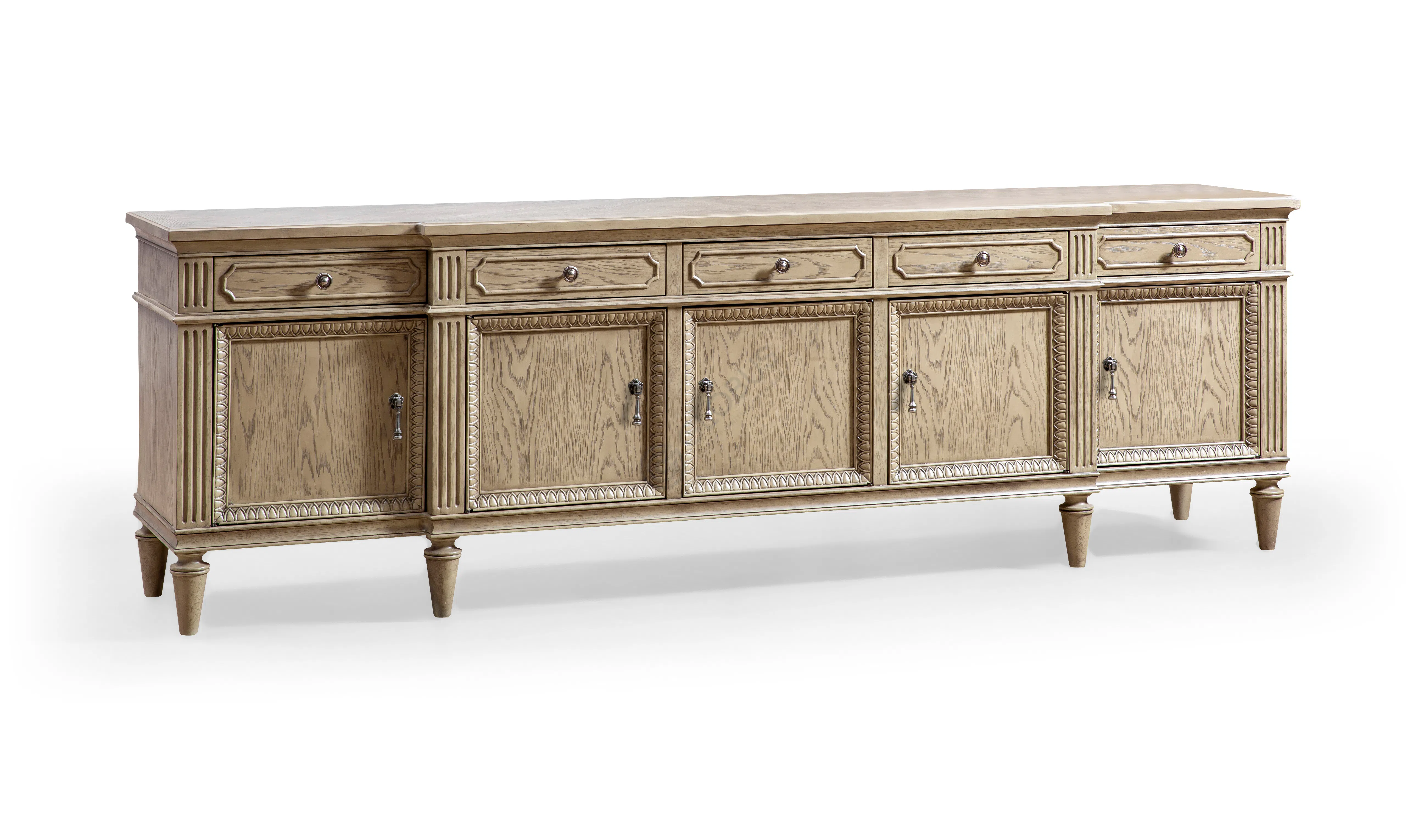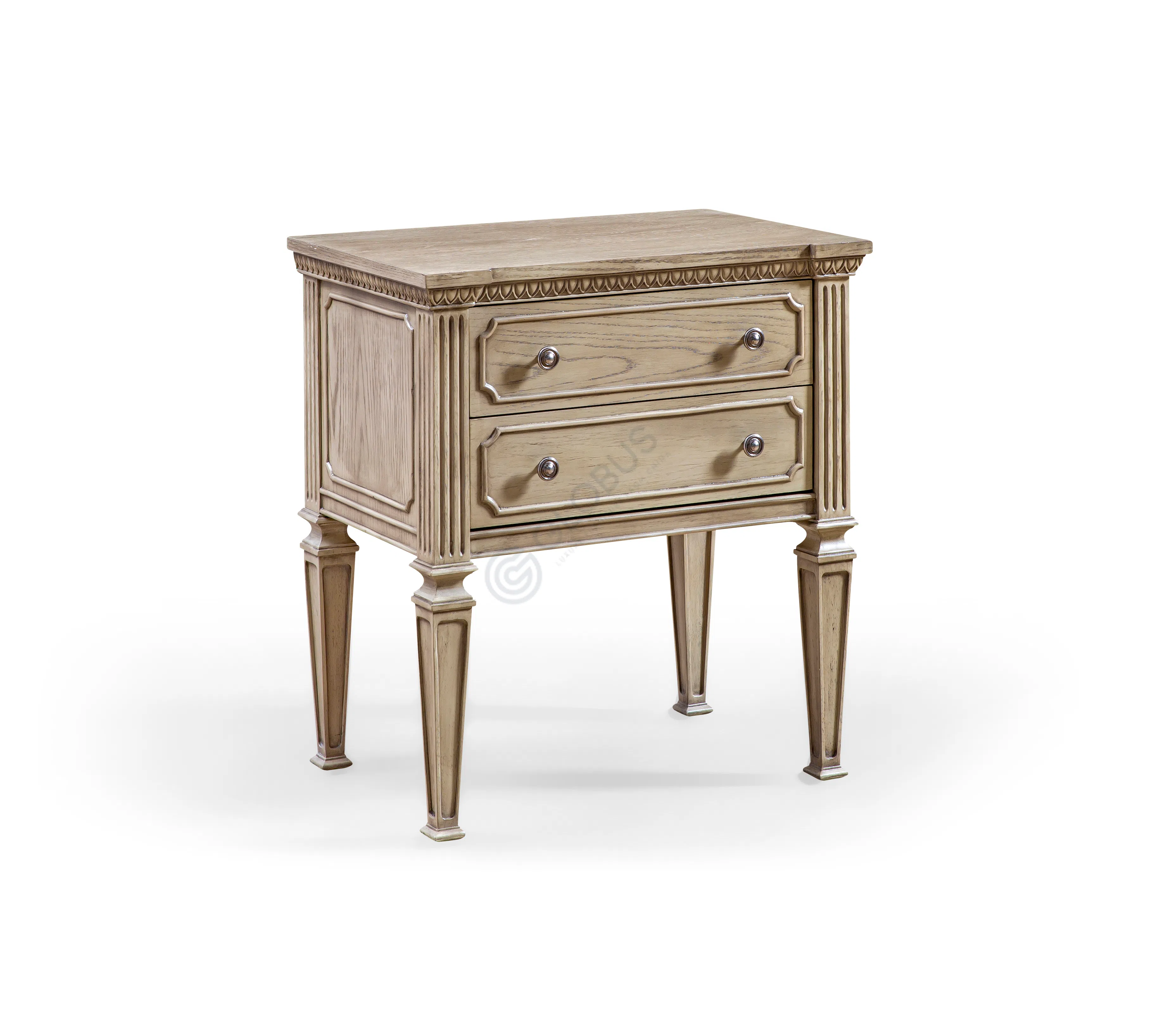 Основа выполнена из натурального массива и МДФ, наружные поверхности облицованы шпоном, что обеспечивает стабильность конструкции и благородную фактуру. Покрытие бережно раскрывает текстуру, сохраняя приятную тактильность.