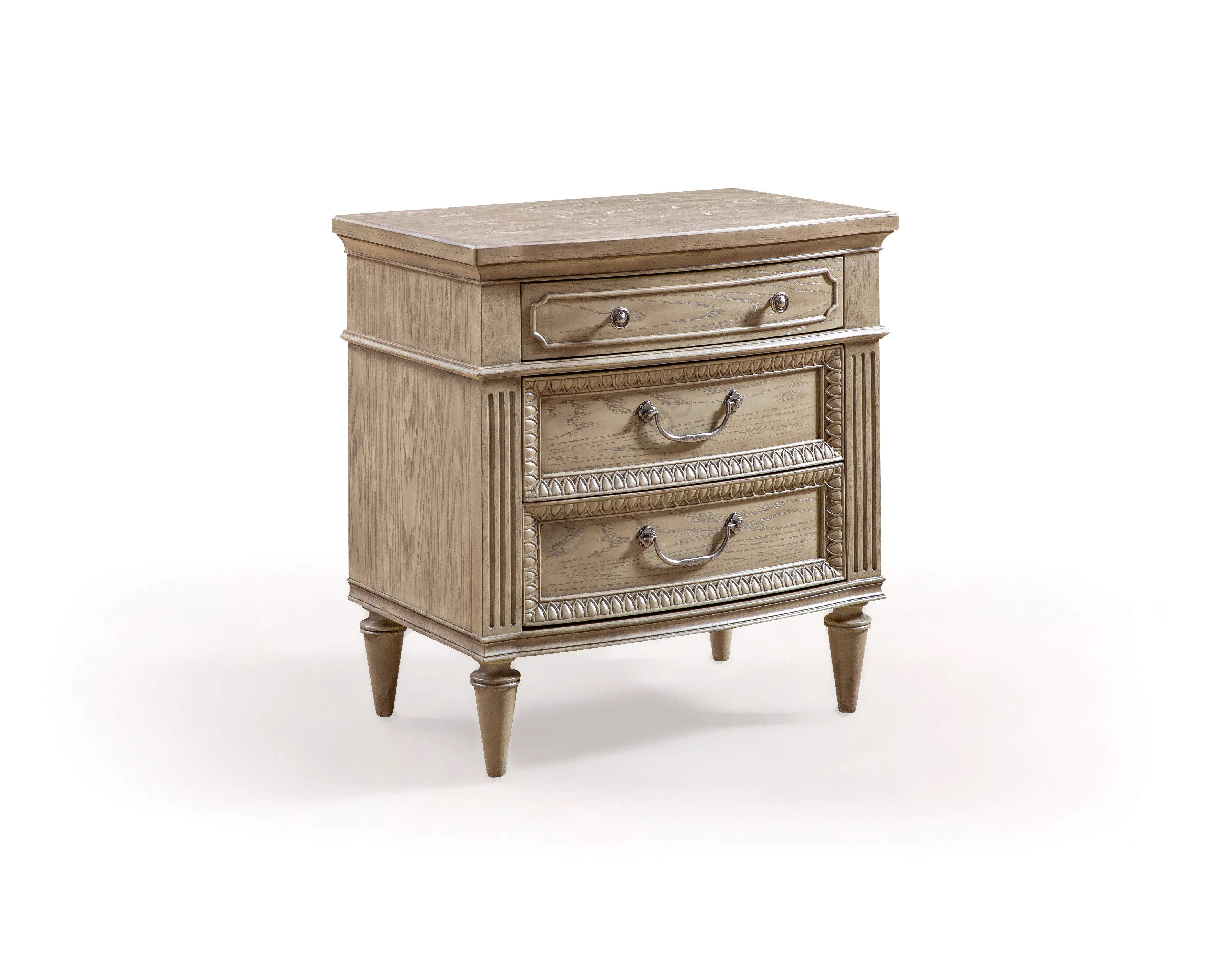 Функциональную часть составляют три выдвижных ящика с аккуратными ручками. Предмет гармонично впишется в домашний кабинет, сочетаясь с кожей, бархатом и латунными деталями, поддержит светлую палитру интерьера и добавит пространству собранности и статуса.