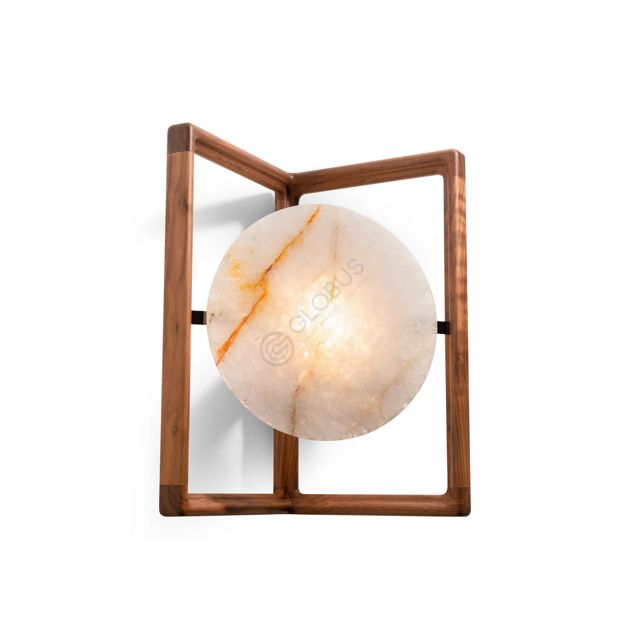 Сочетание этих двух благородных материалов придает изделию уникальную выразительность. Чистые линии деревянной рамы подчеркивают природную красоту камня, делая этот прибор настоящим арт-объектом. Это не просто источник света, а элемент, который обогащает пространство.