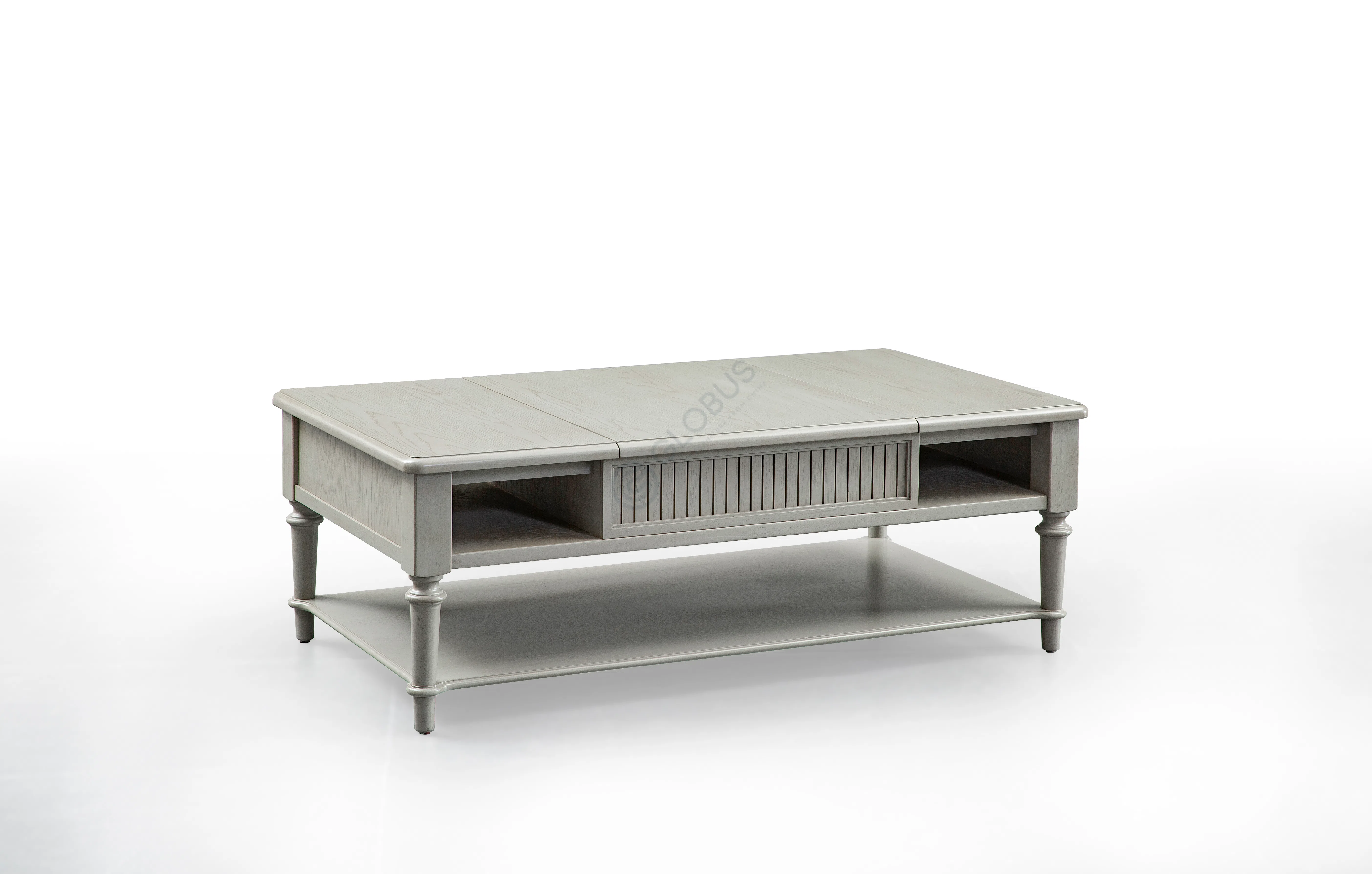 В основе создания этого предмета интерьера лежит искусное использование натурального дерева, высококачественного шпона и МДФ, что гарантирует его долговечность и безупречный вид. Характерные точеные ножки придают конструкции воздушность и грацию, а фасад выдвижного ящика украшен деликатной вертикальной фрезеровкой, формируя утонченный визуальный акцент.